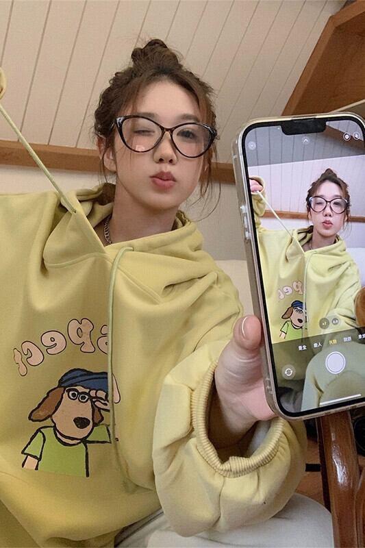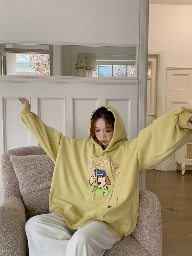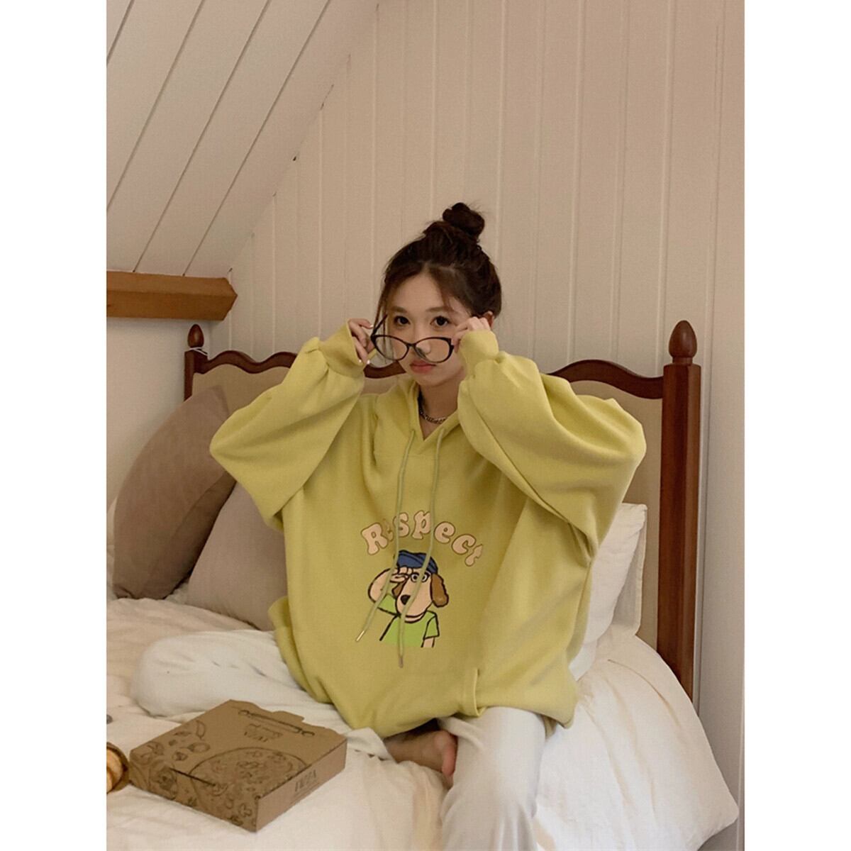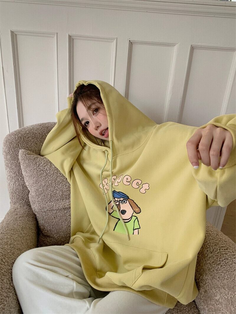 フード付き長袖スウェットシャツ女性の2023年秋の新しいカレッジスタイルの漫画プリントルーズミッドレングス多用途トップ ロング オータム 秋物 missk25124368339