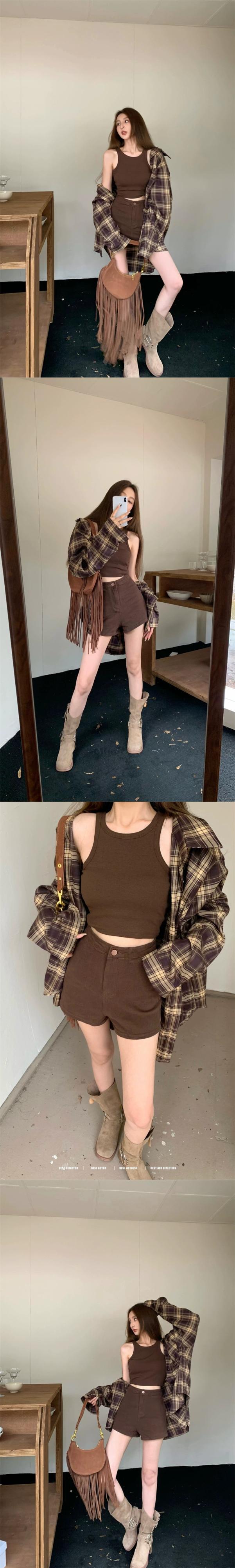色:ショートパンツ,格子縞のシャツ,ベスト