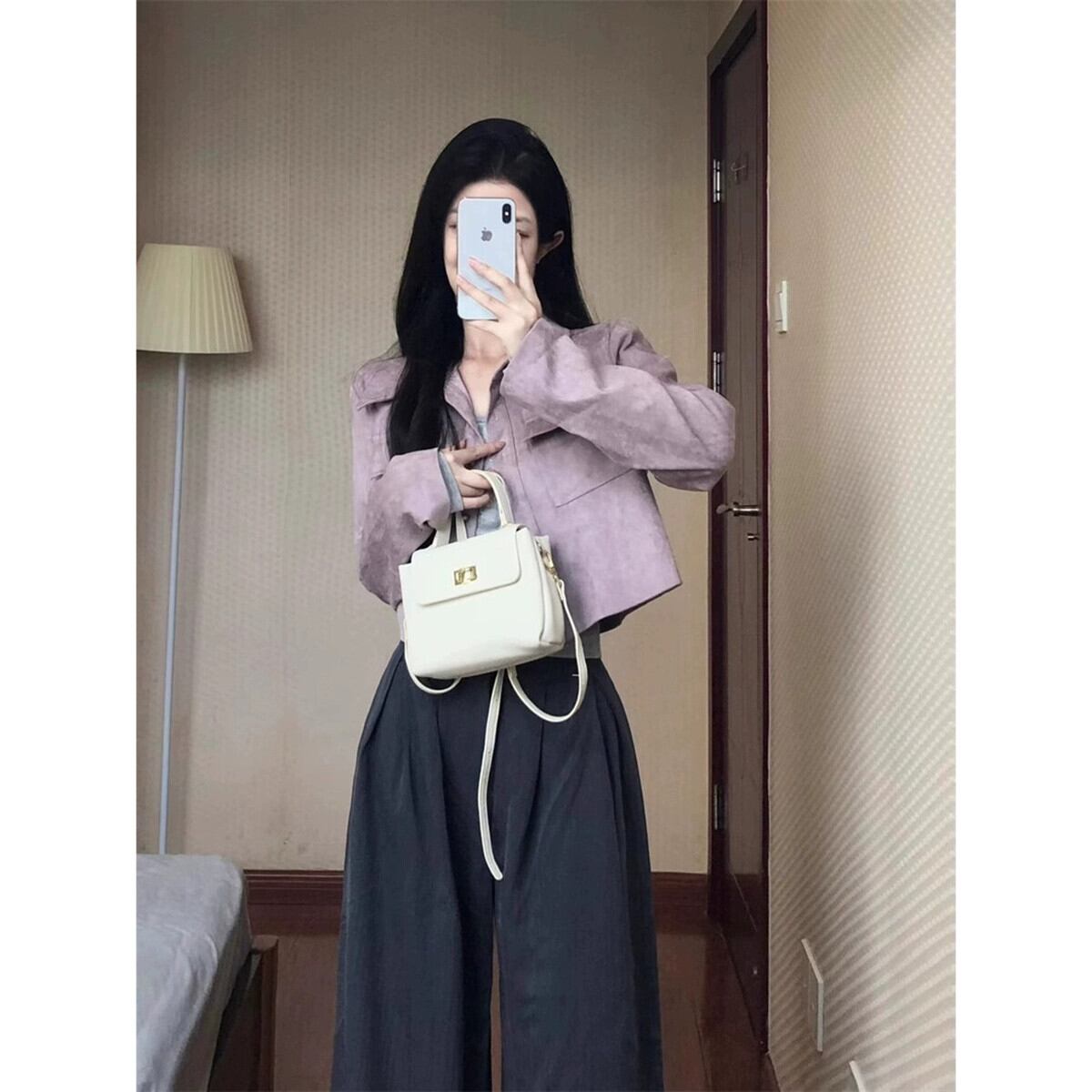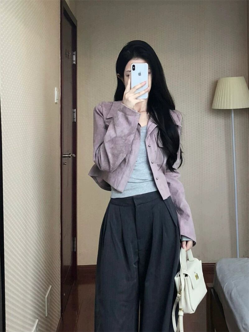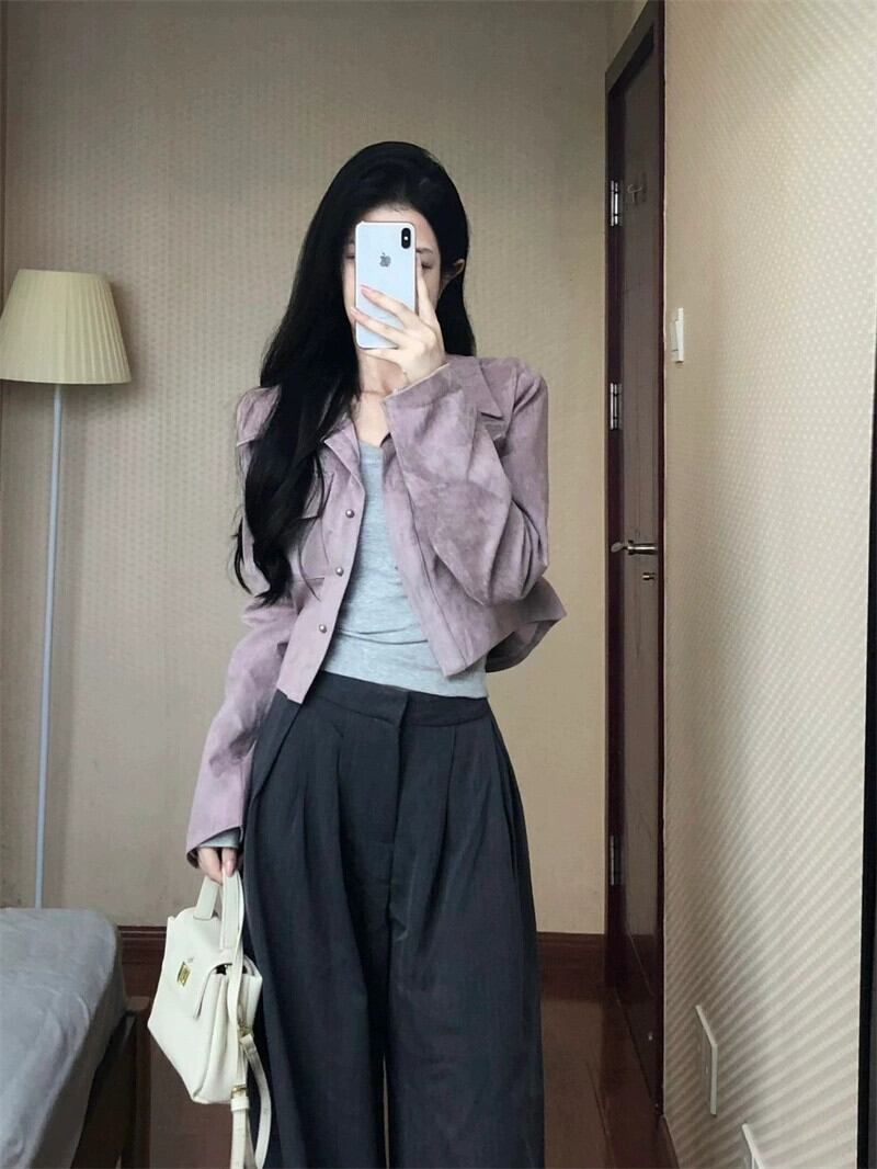 レトロ模造鹿革ベルベット長袖ジャケット女性初秋 2023 新しいスタイルフランスの気質ショートリトルジャケットトップ ロング オータム 秋物 missk95670408344