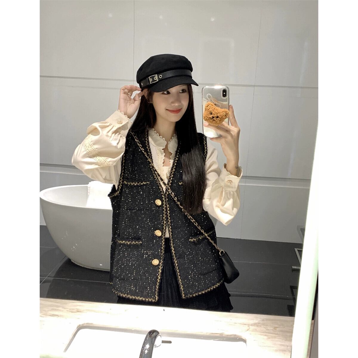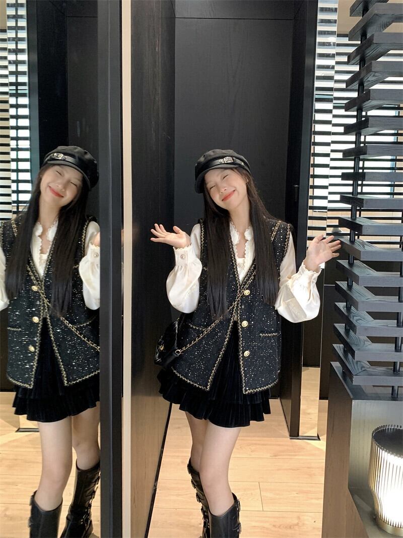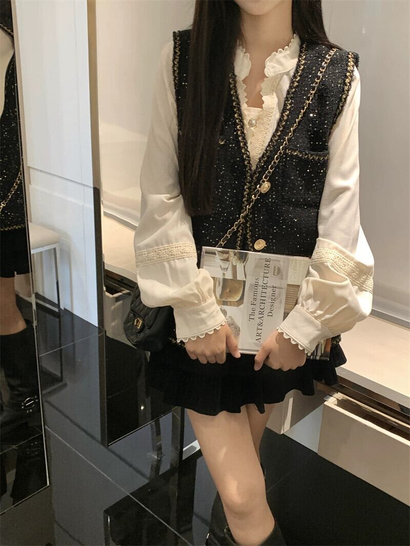 ツイード高級スモールフレグランス V ネックベストジャケット長袖シャツ女性の 2023 秋の新ファッションスーツ ロング オータム 秋物 Vネック missk66740489290