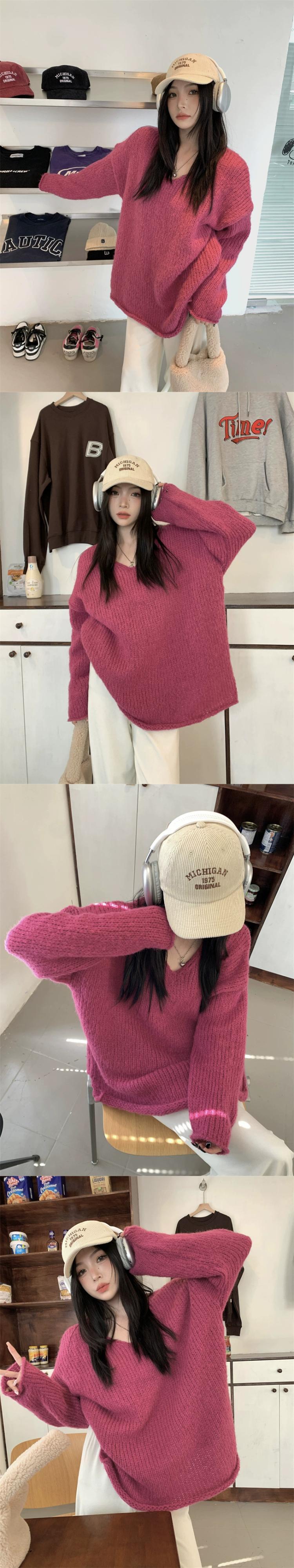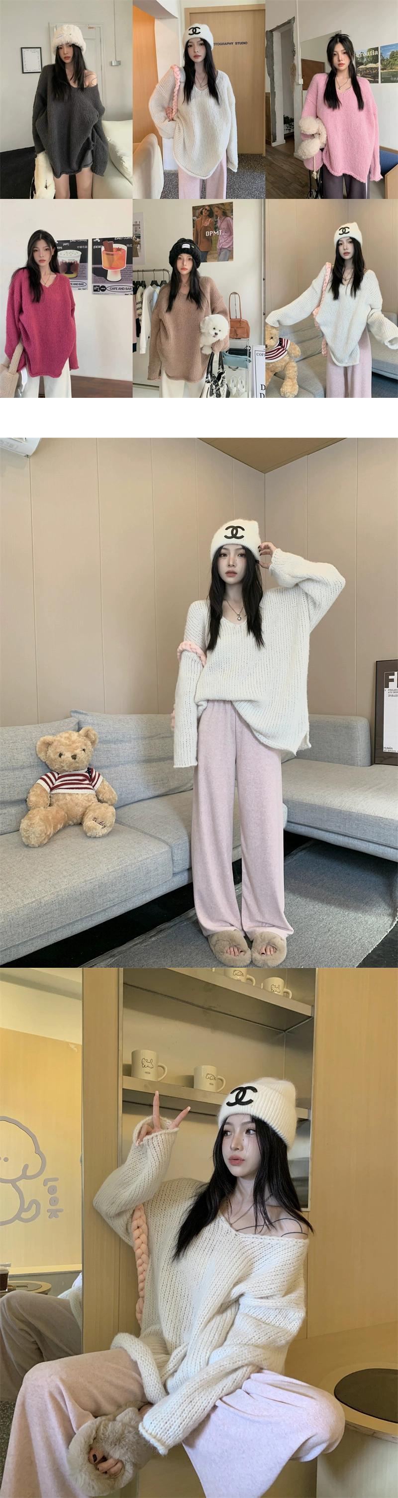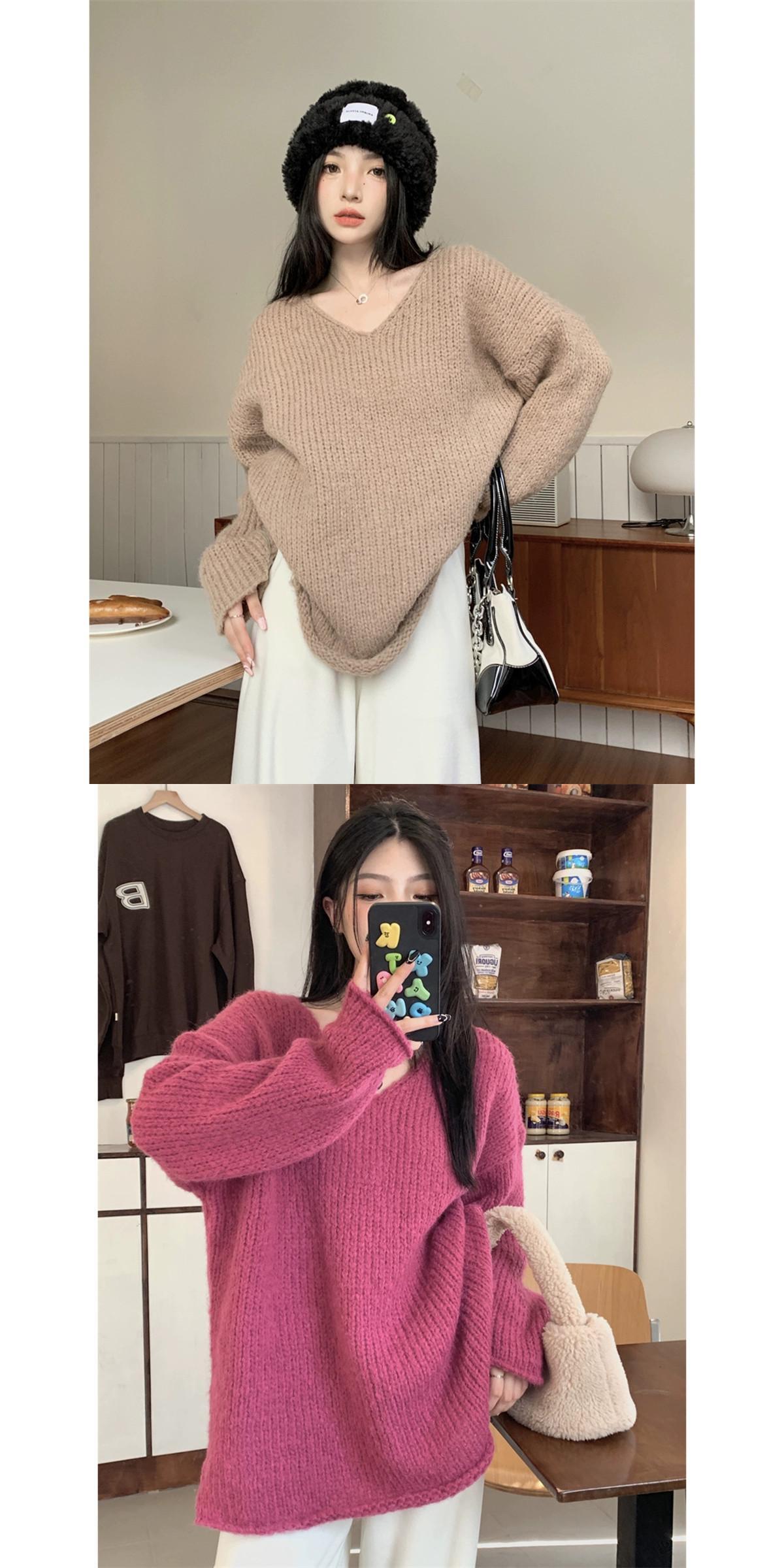 怠惰なスタイル V ネックプルオーバーセーター女性秋 2023 新しいレトロなルーズアウターウェア太針長袖ニットトップ ロング オータム 秋物 Vネック missk36815792384
