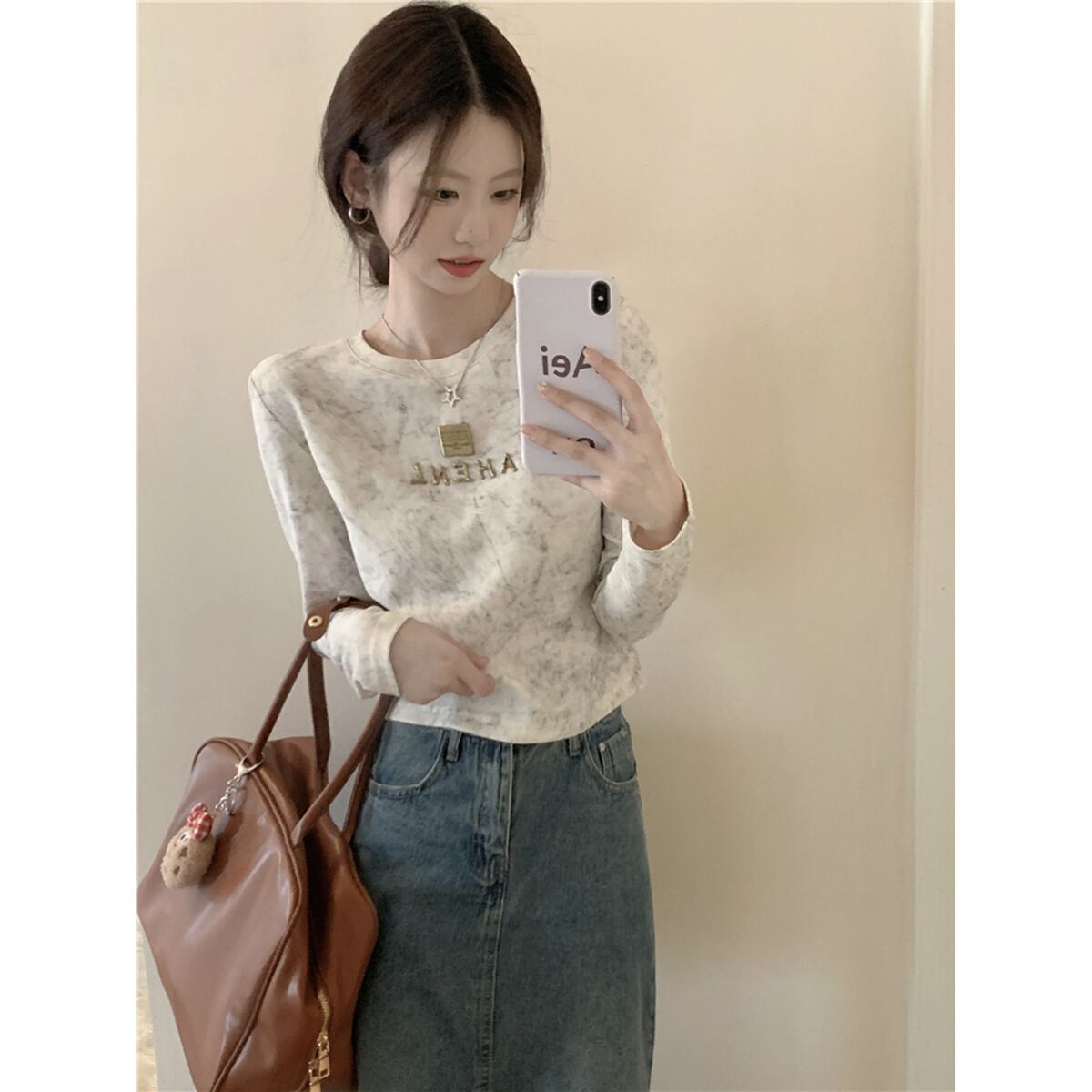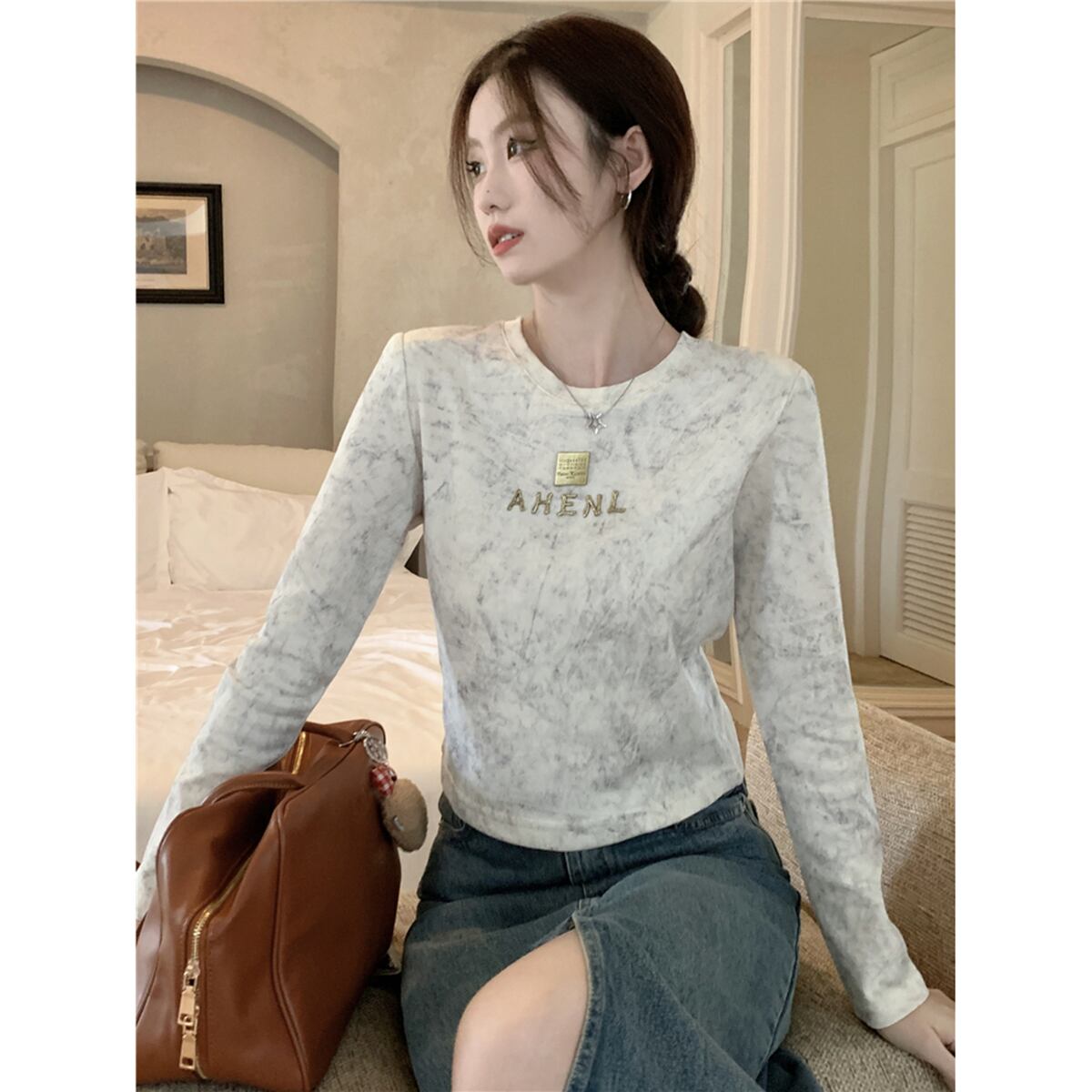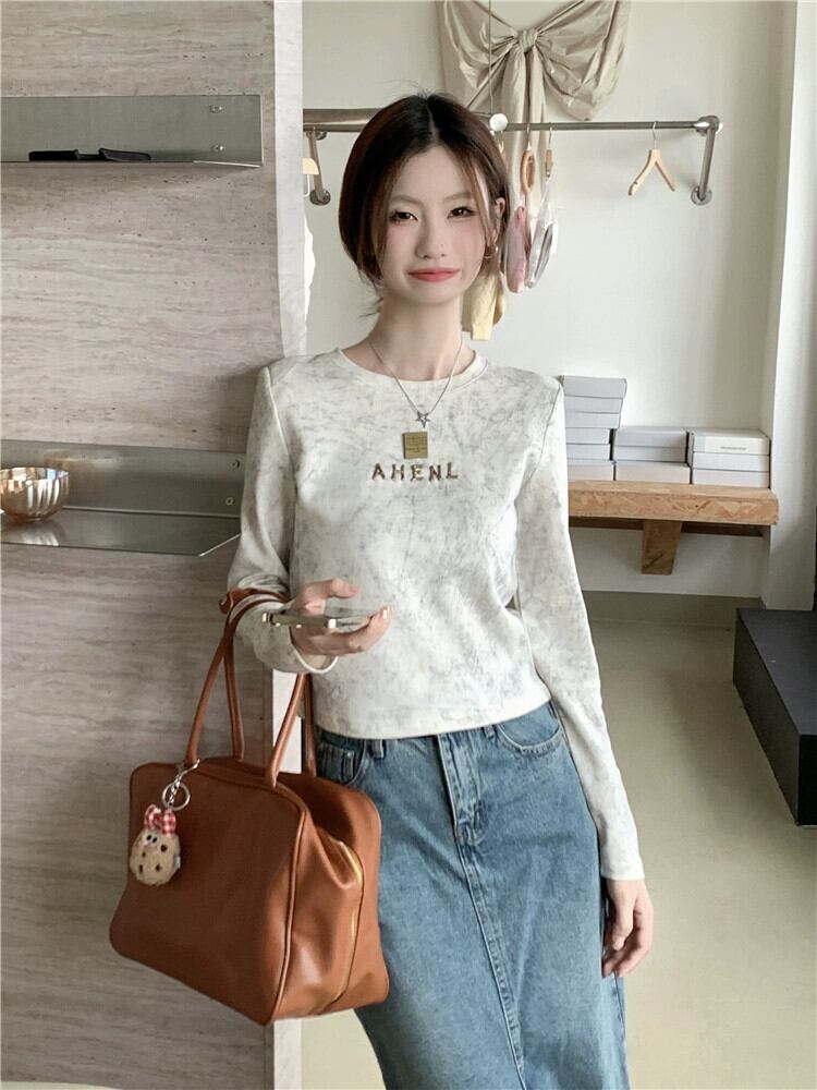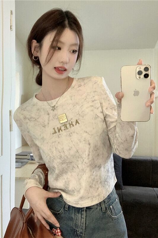 右肩長袖 Tシャツ女性 2023 秋の新スタイルフレンチニッチ痩身デザインユニークなボトリングトップ ロング オータム 秋物 missk61719608096