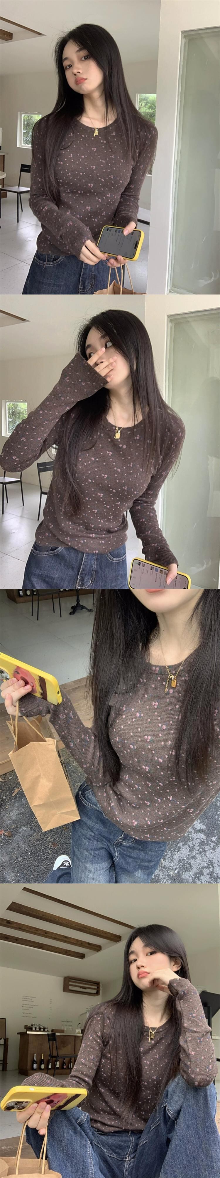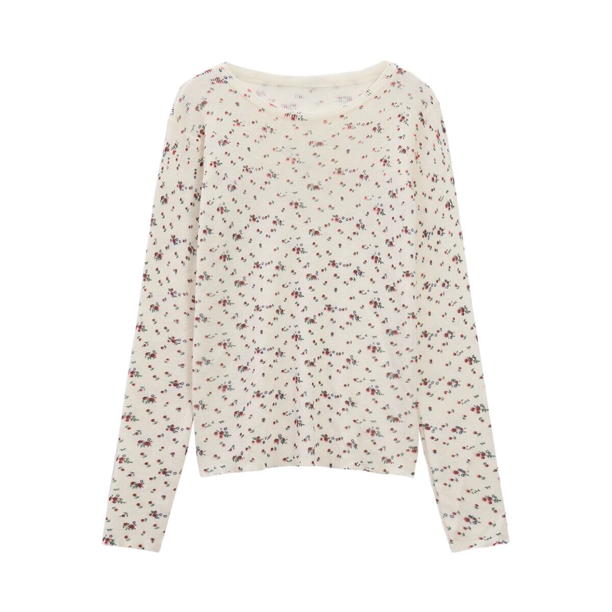 ソフトでワックス状の花柄長袖セーター秋 2023 新しいスタイル多目的痩身底アウタートップ女性 ロング オータム 秋物 missk64018700723