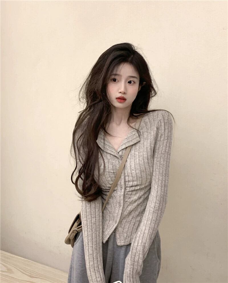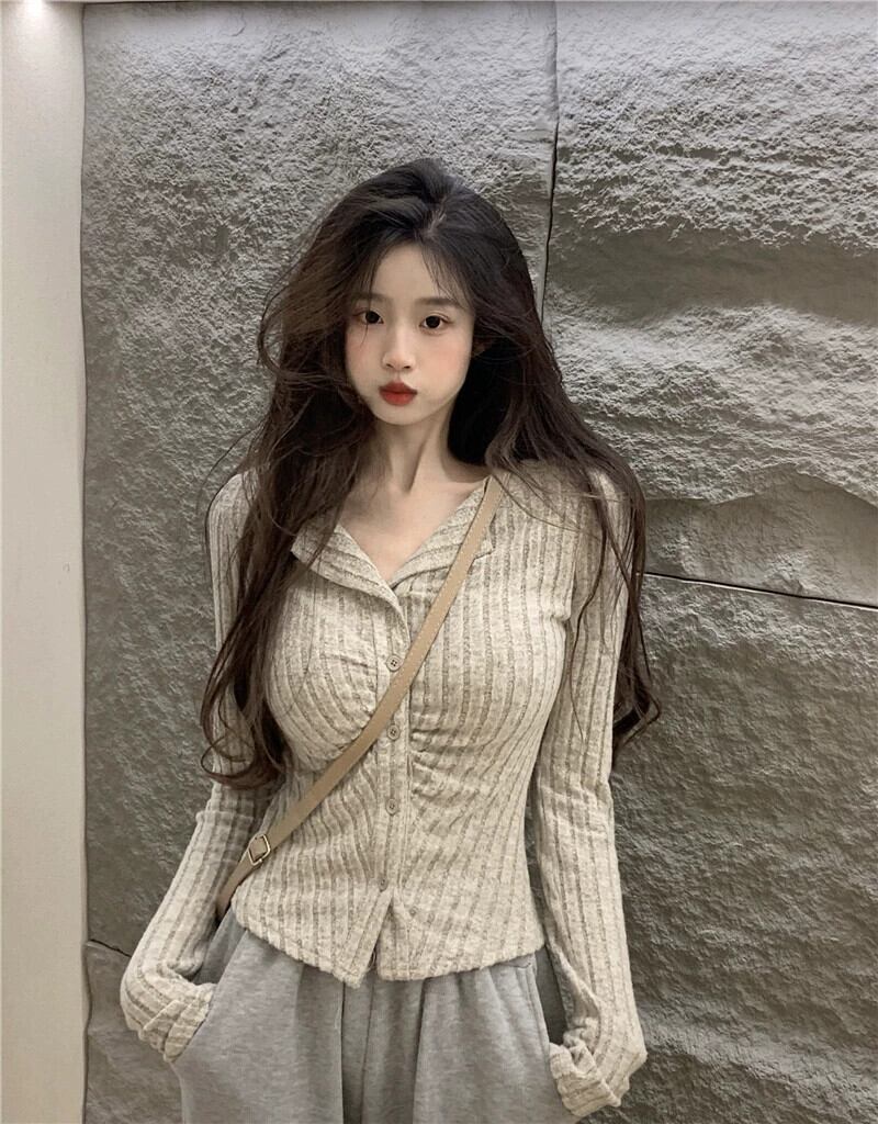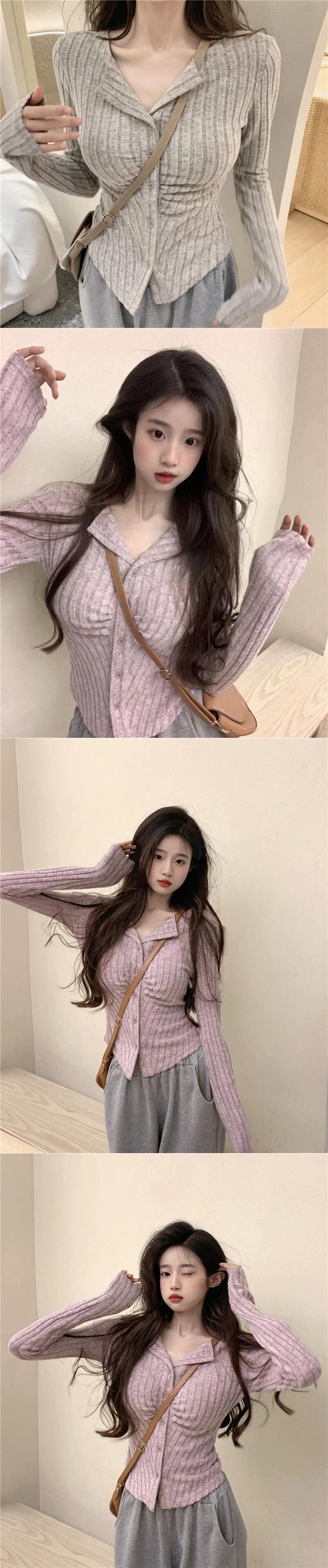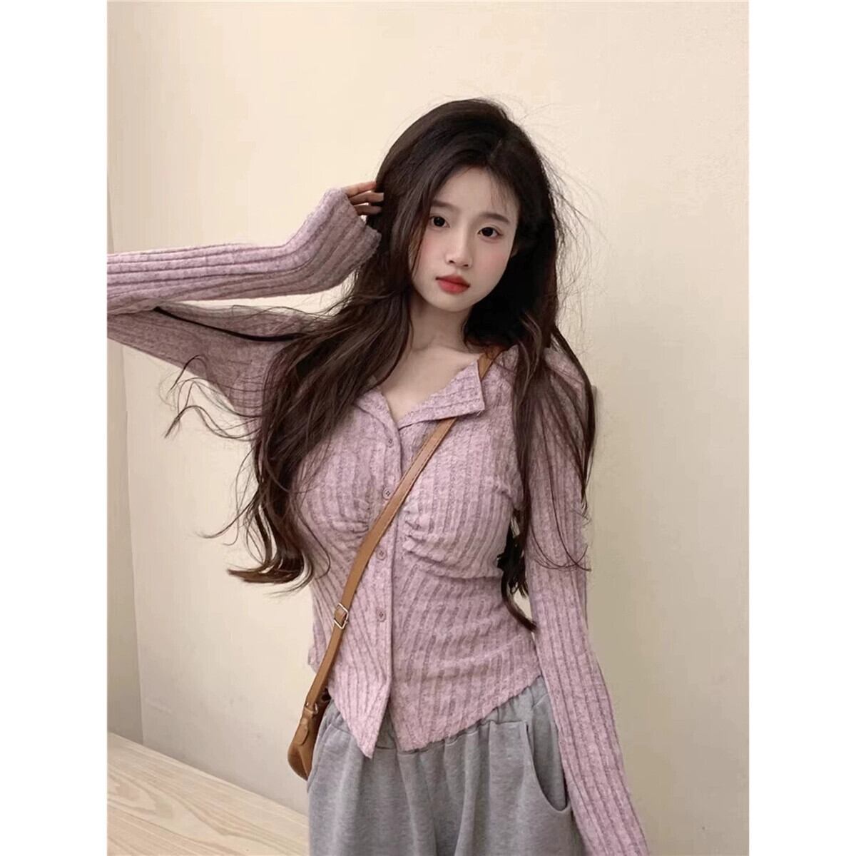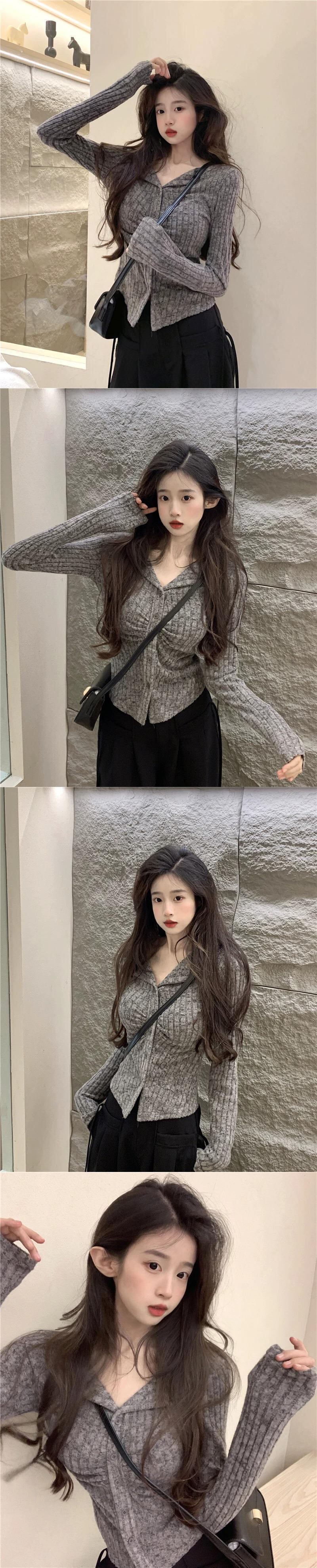ラペルプリーツ長袖セーター女性の秋 2023 新しいレトロスリムフィットデザインシックな小さなシャツ ロング オータム 秋物 missk42626102893