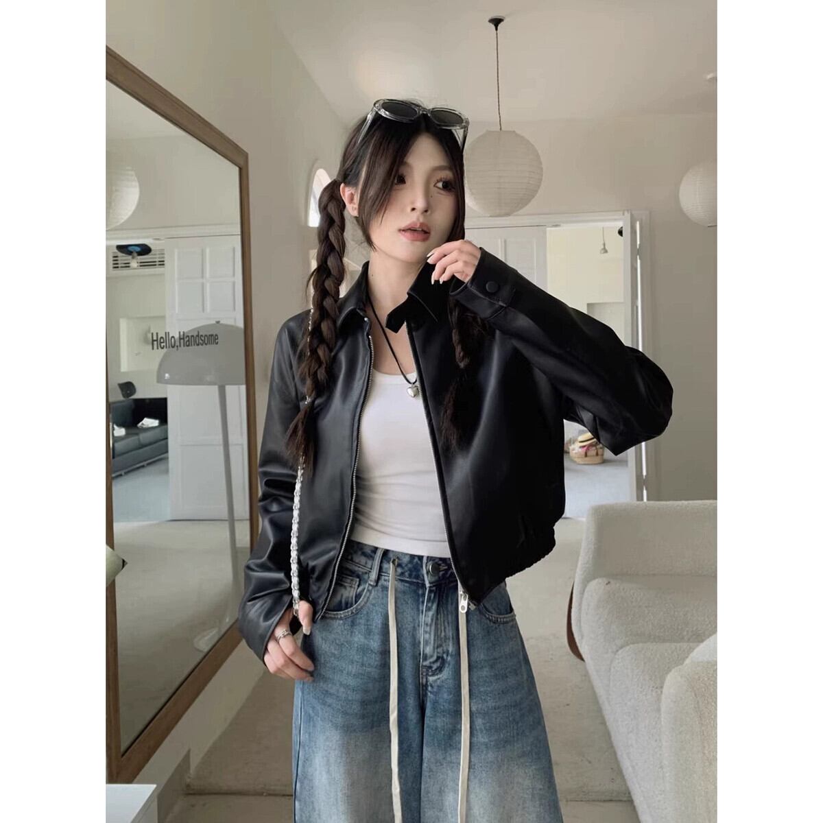 2023 初秋の新アメリカンレトロカジュアルファッション多用途 PU レザーショートスリム長袖オートバイジャケットの女性 ロング オータム 秋物 missk11642527741