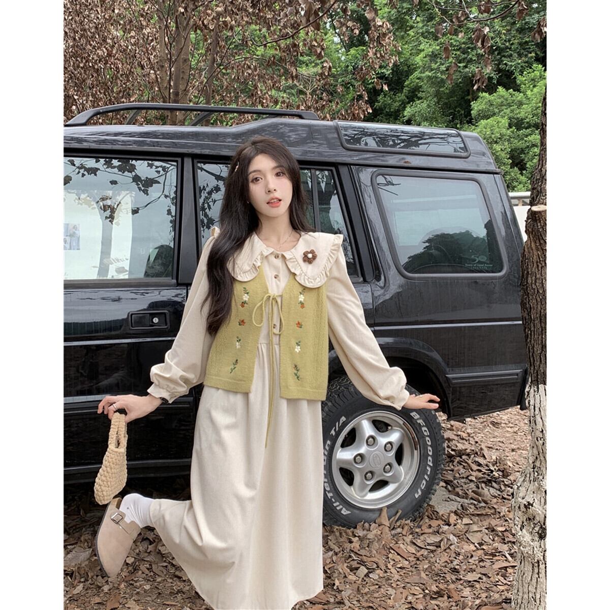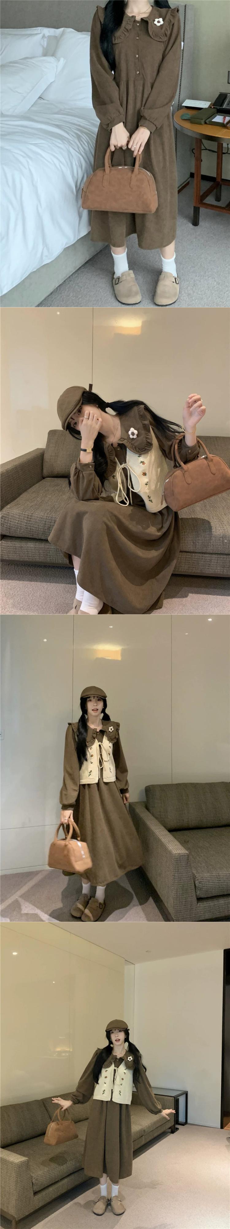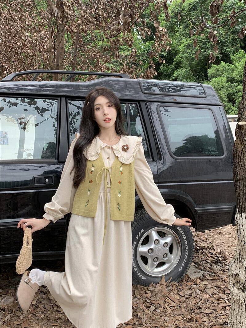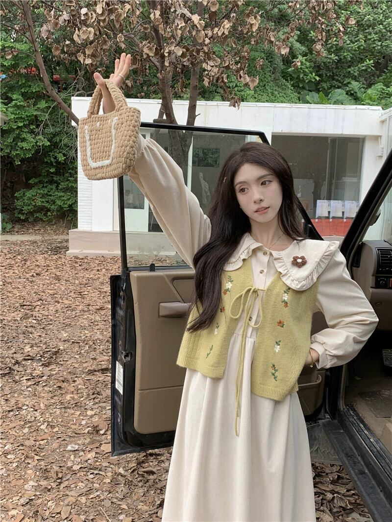 フレンチドール襟コーデュロイ長袖ドレス刺繍ニットベスト女性秋 2023 新しいファッションスーツ ロング レッド オータム 秋物 missk37751298478
