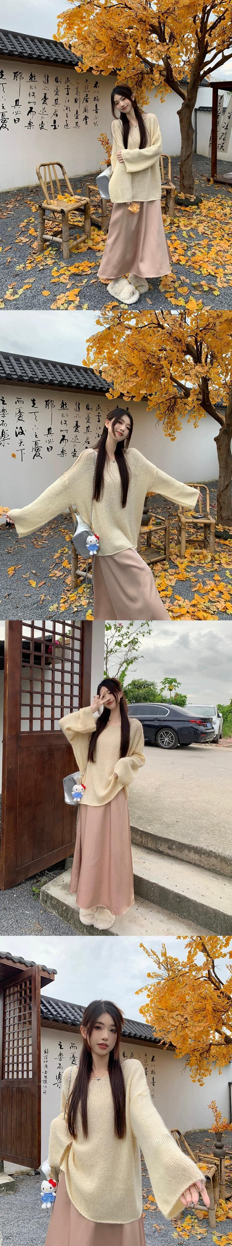 優しい風モヘア長袖セータードレープサテンサスペンダードレスレディース 2023 秋新作 2 点セット ロング オータム 秋物 missk35911150255