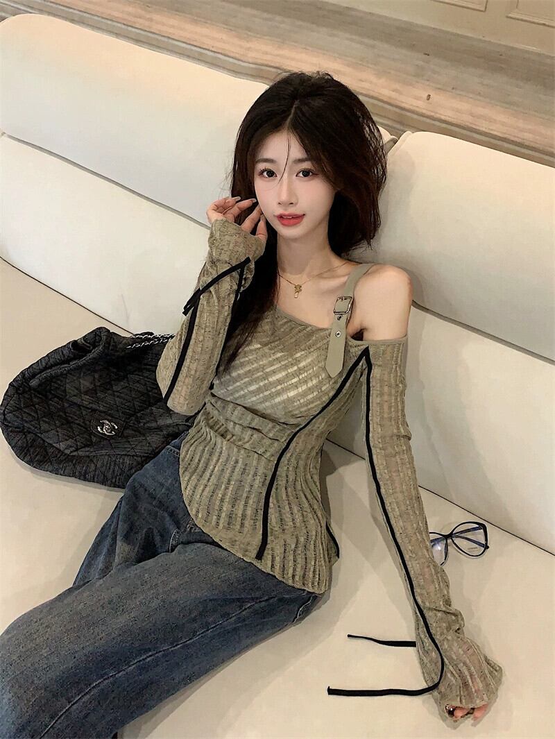 ED オフショルダー長袖セーター女性秋バージョン 2023 新しい不規則なスリムスリムトップ ロング オータム 秋物 missk65634426312