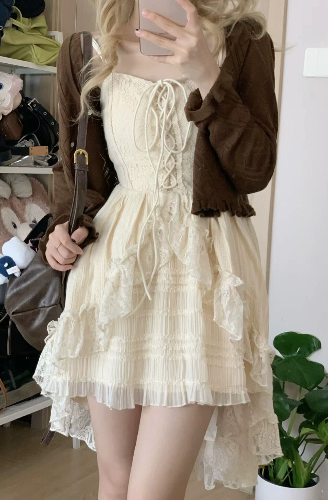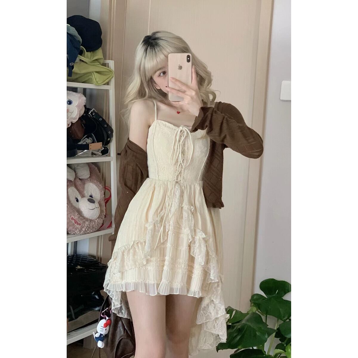 レーススプライシングサスペンダードレスレディース、2023年秋の新デザイン、西洋スタイル、年齢を減らすウエスト、痩身Aラインスカート オータム 秋物 missk58783197069