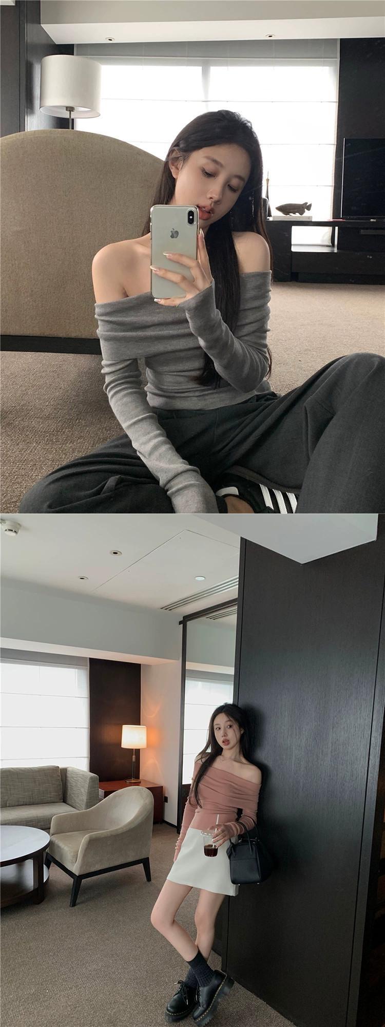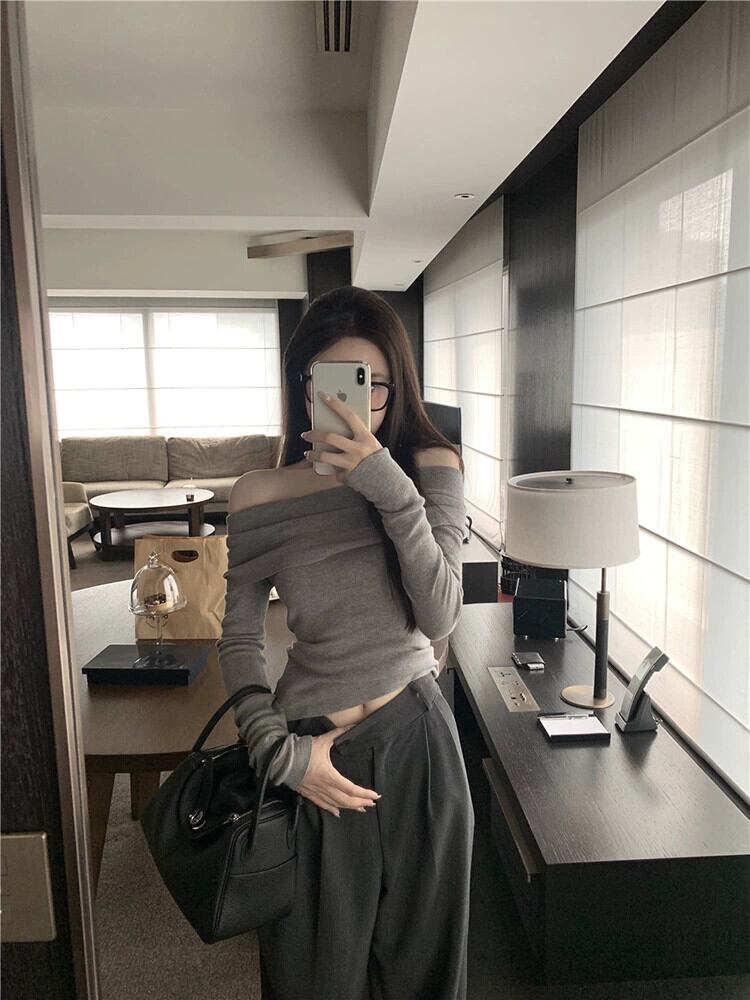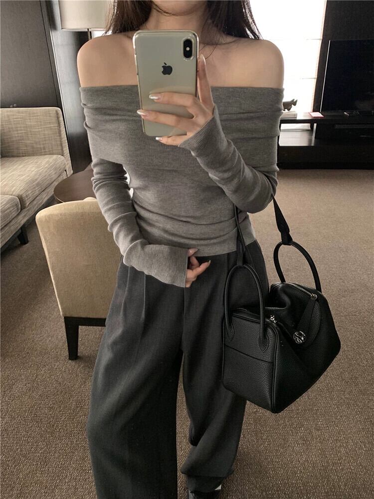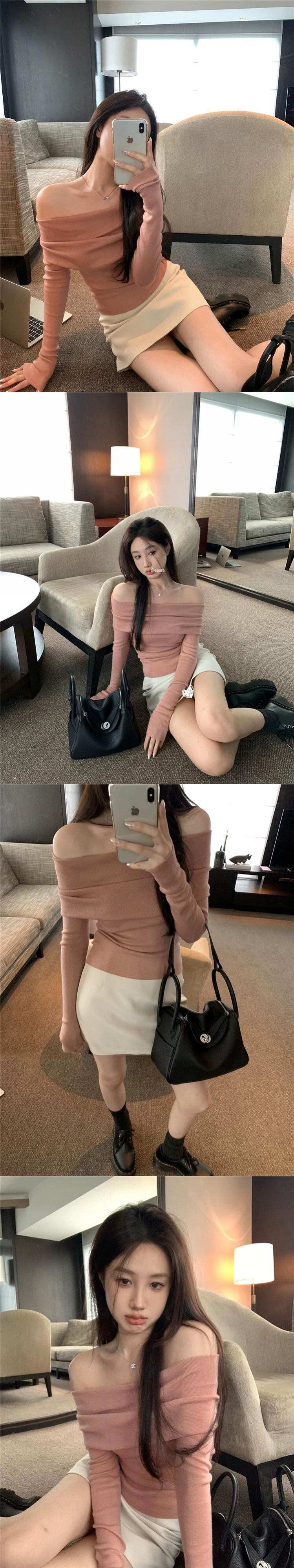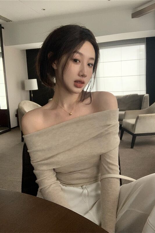 ワンショルダー長袖セーターの女性、2023秋バージョンの新しいスタイル、痩身、気質、ユニークなデザインのトップ ロング オータム 秋物 missk248985600