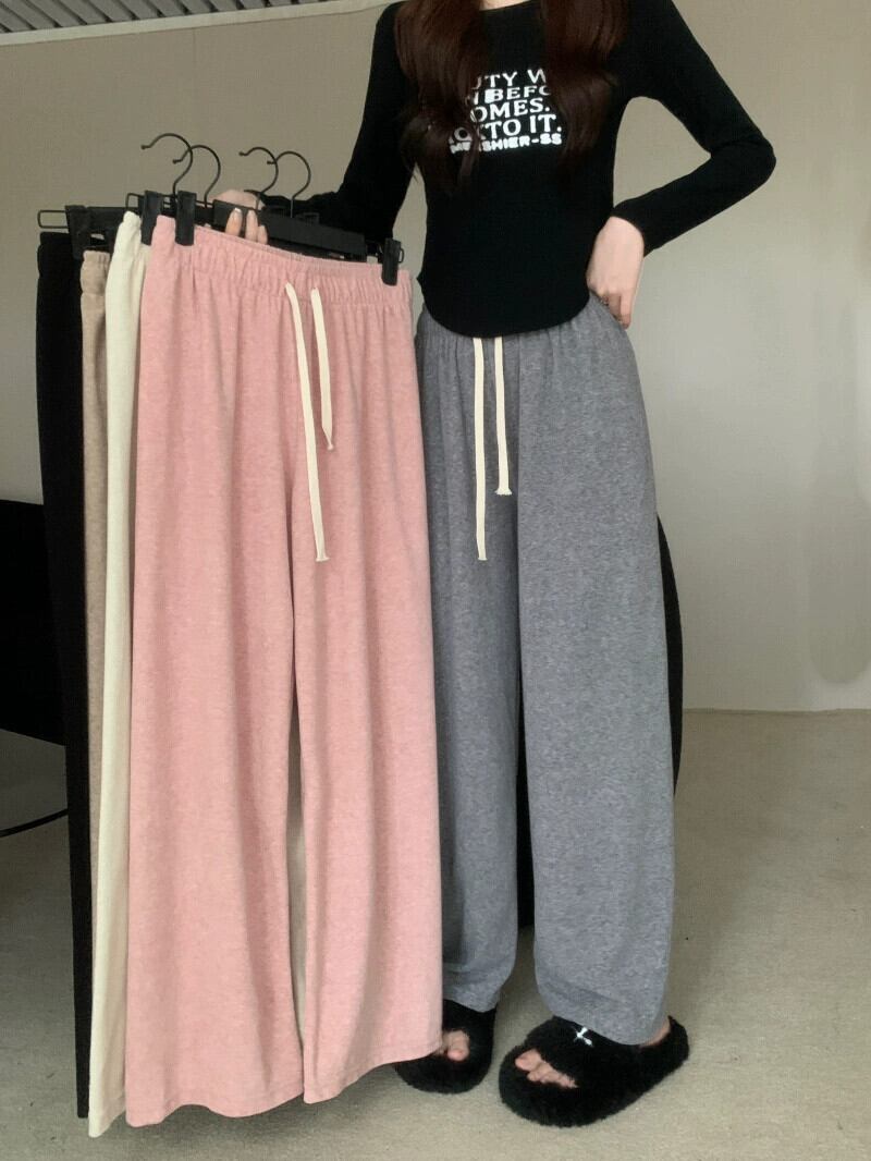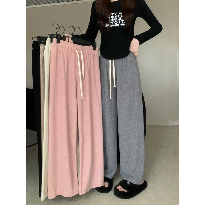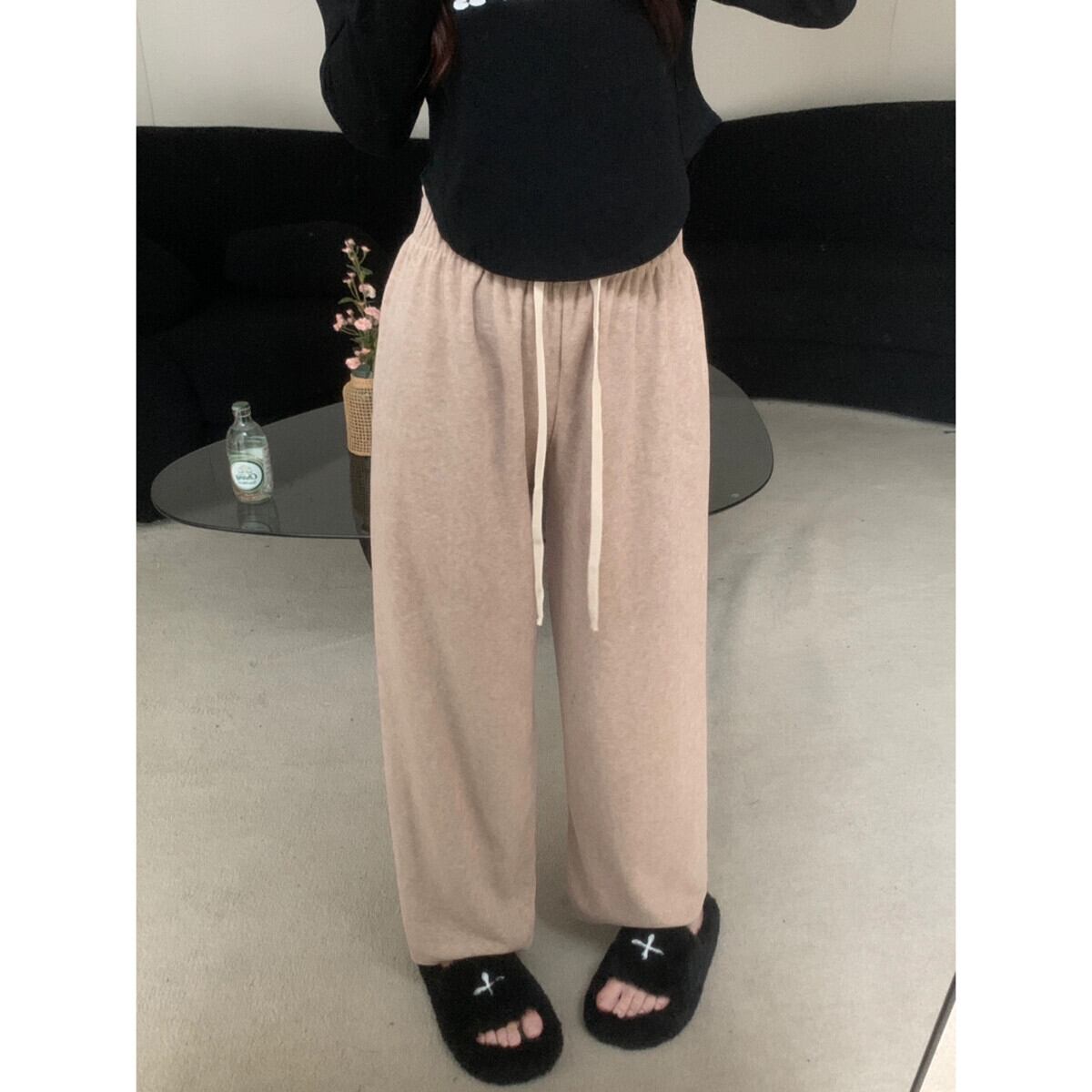 弾性ウエストカジュアルパンツ女性秋バージョン 2023 新しいハイウエストスリム多目的無地ワイドレッグストレートロングパンツ ハイウェスト エラスティック 伸縮 オータム 秋物 ワイドパンツ ソリッドカラー missk15788447830