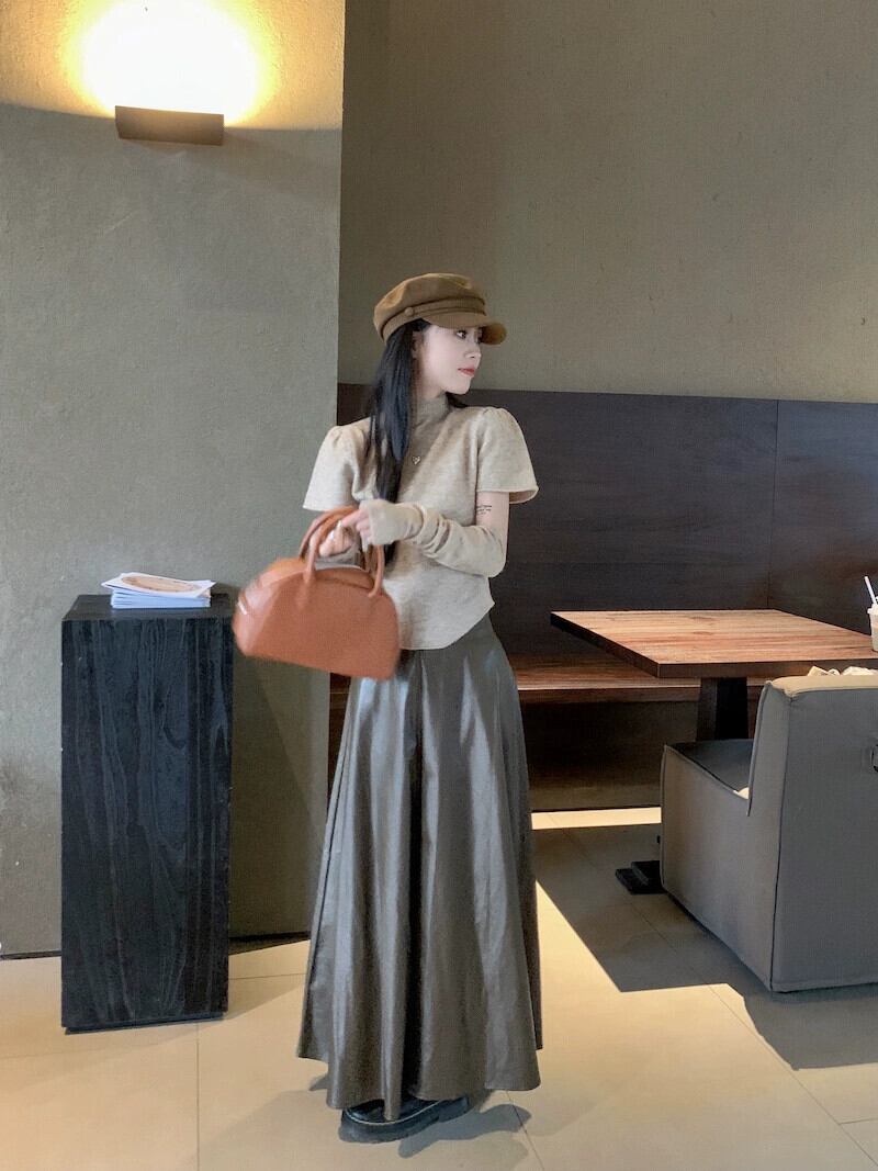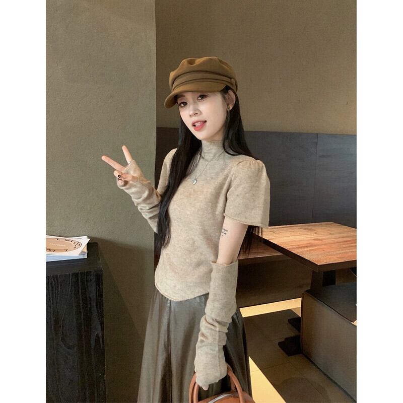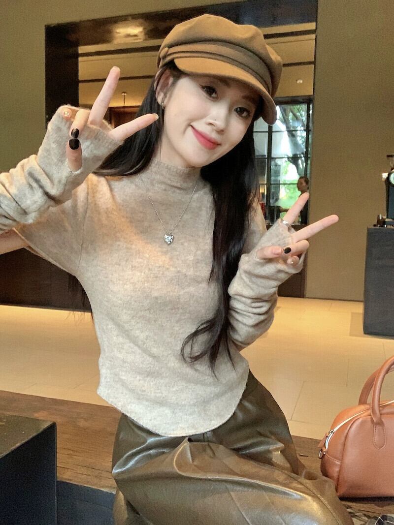 オートミールカラーセーターレディース秋バージョン2023新作ハーフタートルネックスリム痩身スタイルスリーブトップ オータム 秋物 missk84327824307
