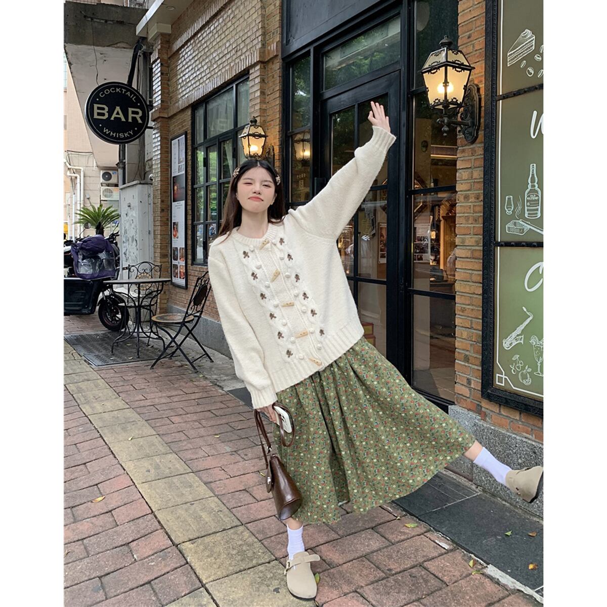 色:フローラルスカート,ベージュコート