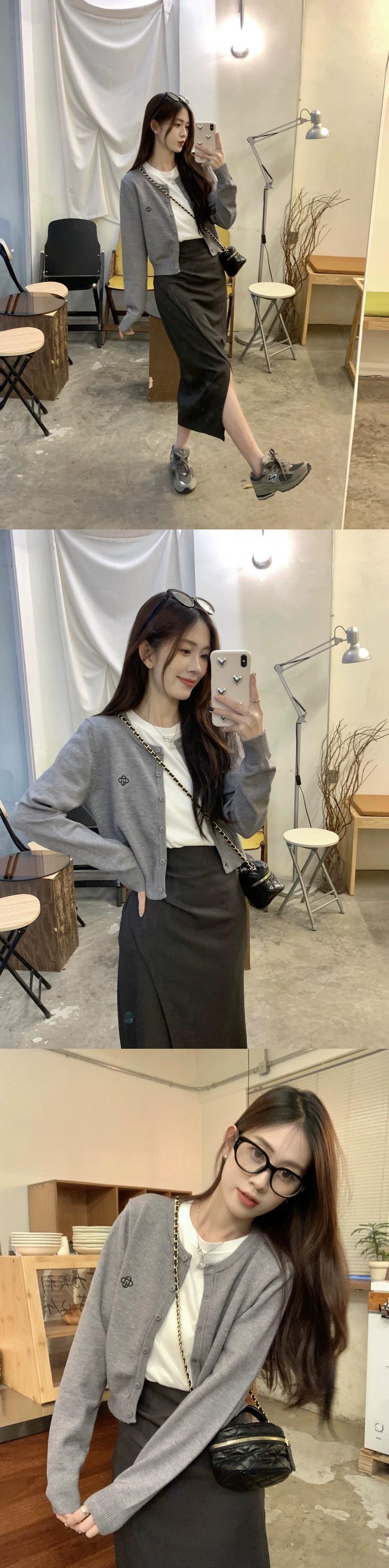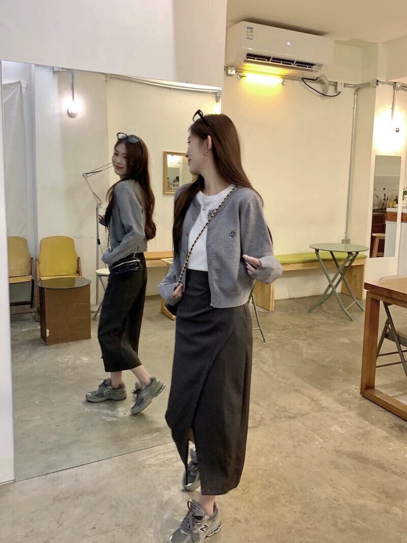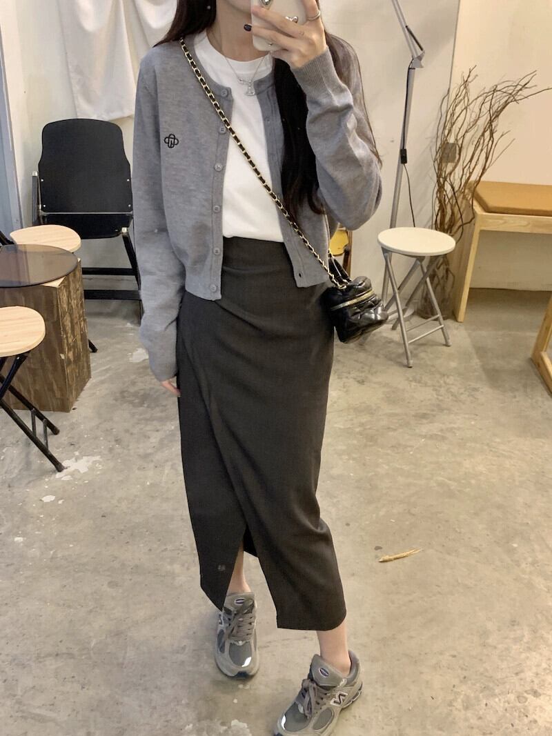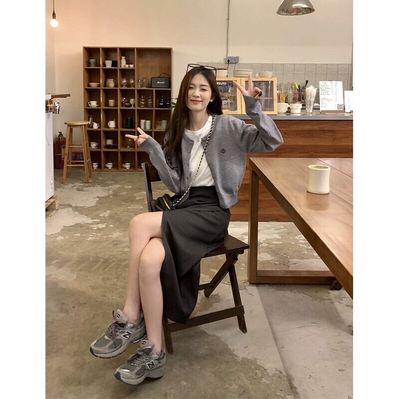 シックなショート長袖ニットカーディガンミドル丈スリットスカートTシャツレディース2023秋新作3点セット ロング オータム 秋物 missk59266892904