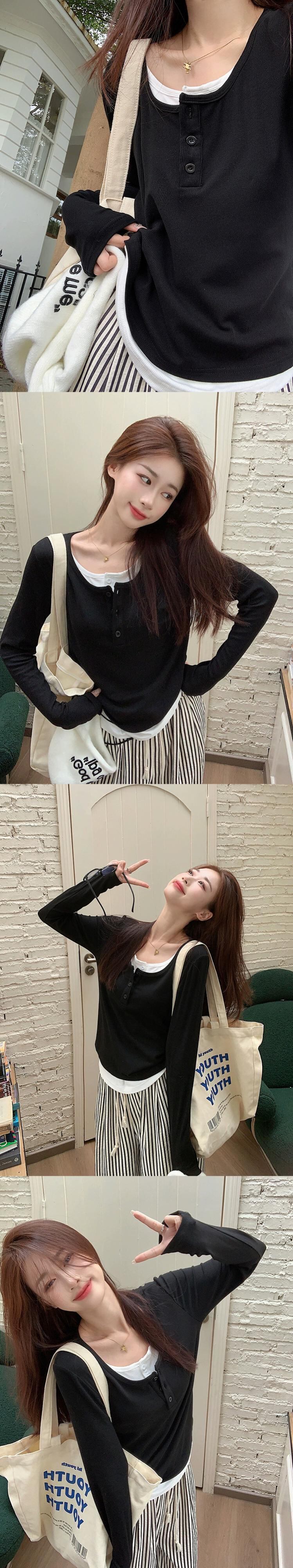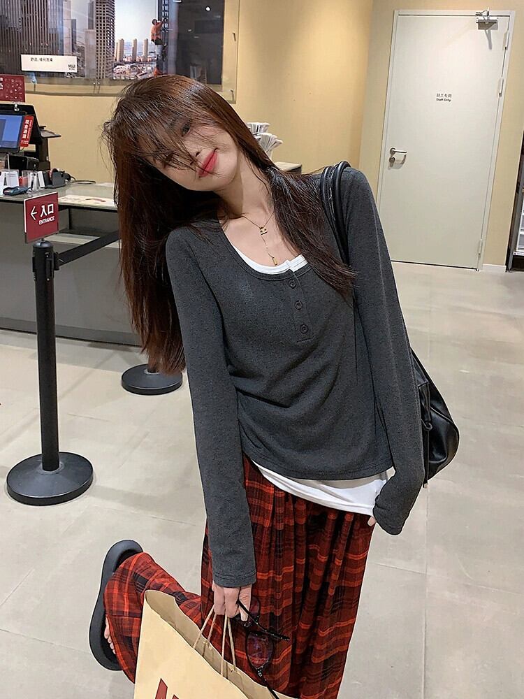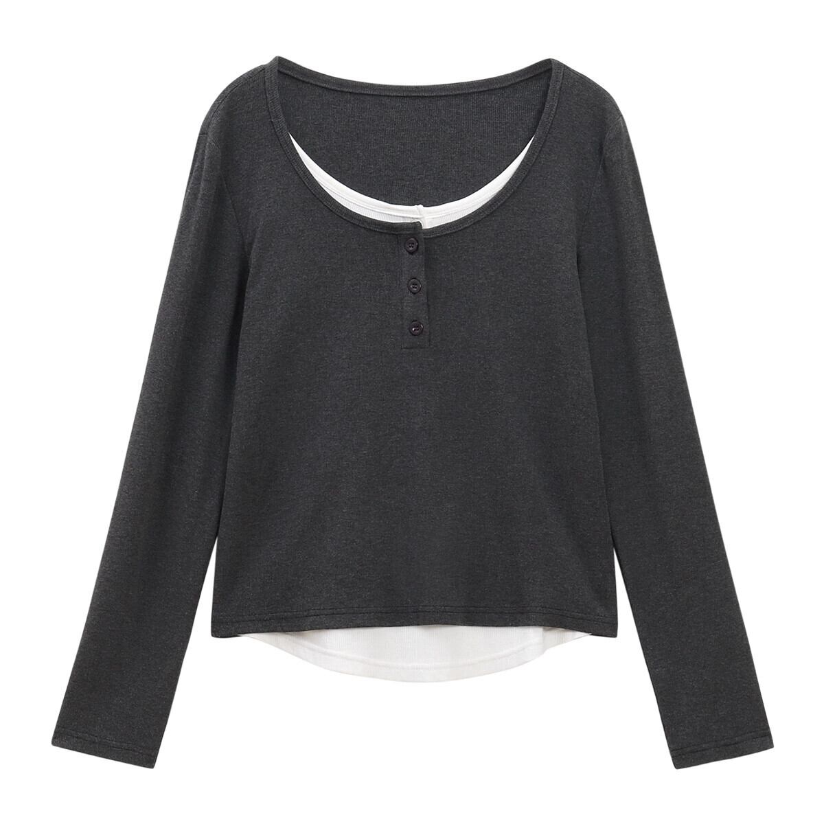 偽ツーピーススレッド長袖 Tシャツ女性秋バージョン 2023 新しいスリムフィットデザインインナーベースレイヤーシャツ ロング オータム 秋物 missk1610112380