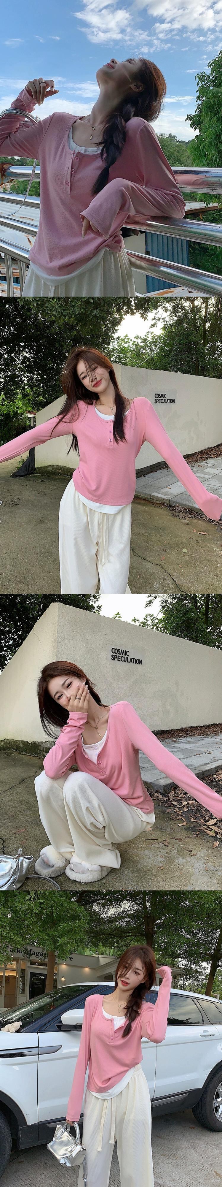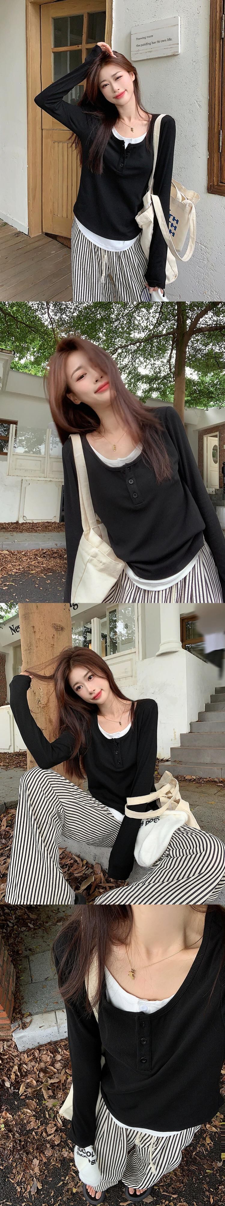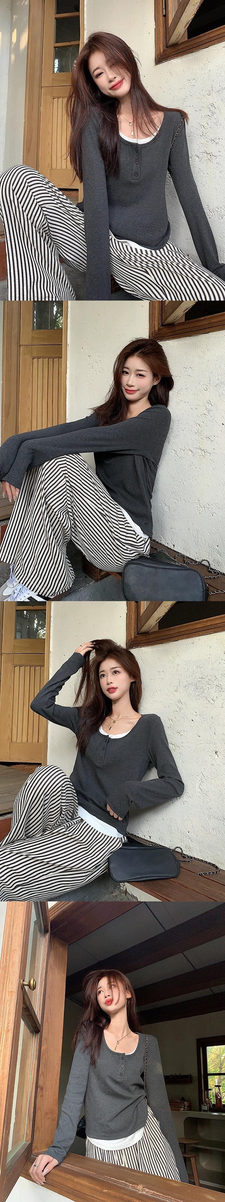 偽ツーピーススレッド長袖 Tシャツ女性秋バージョン 2023 新しいスリムフィットデザインインナーベースレイヤーシャツ ロング オータム 秋物 missk1610112380
