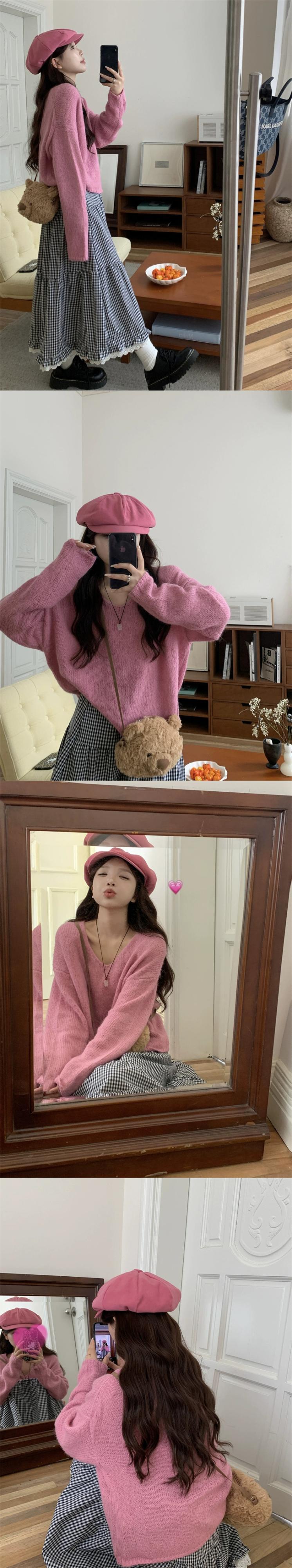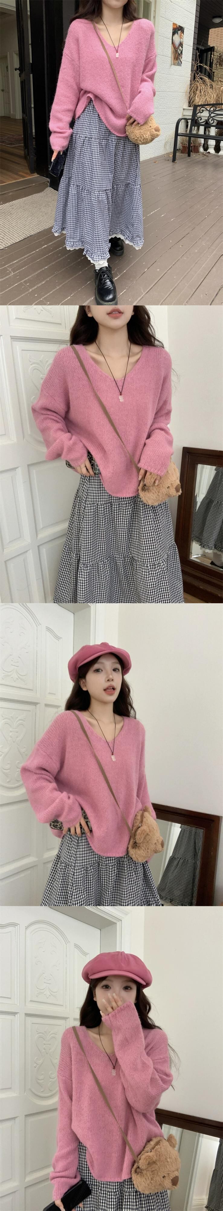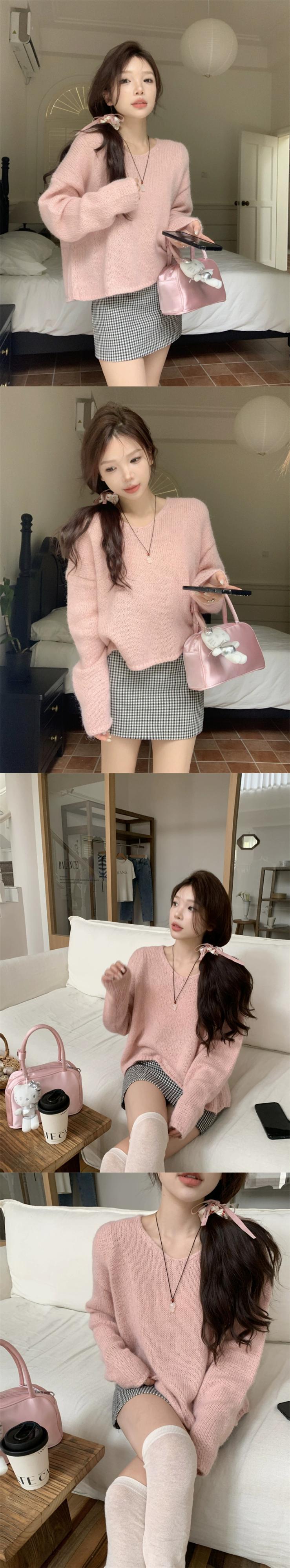 優しく優しいモヘアセーター秋 2023 新しいスタイル長袖ファッショナブルなピンクのセータートップス女性 ロング オータム 秋物 missk86063268410