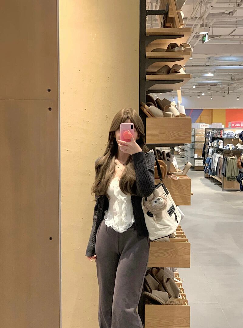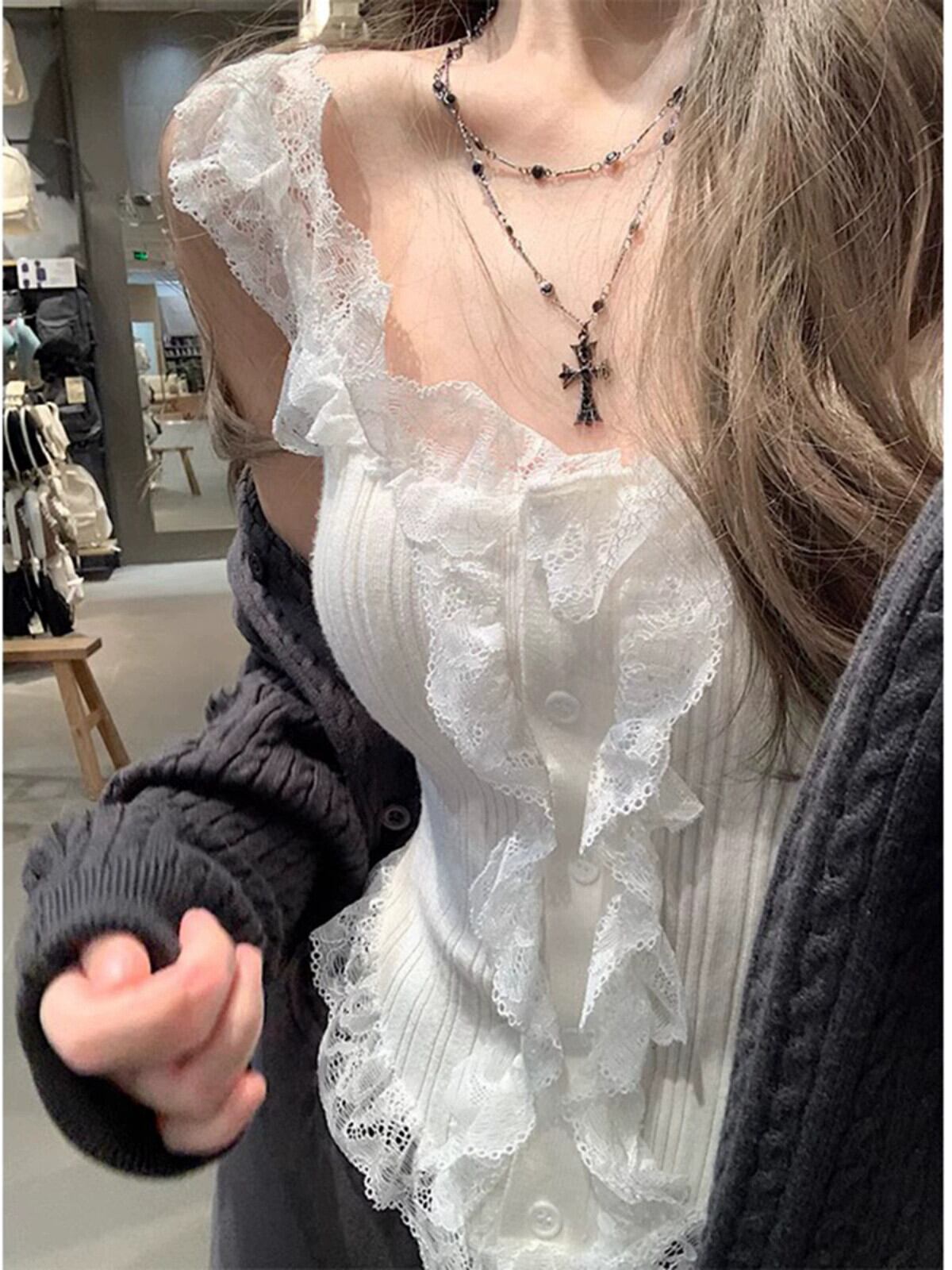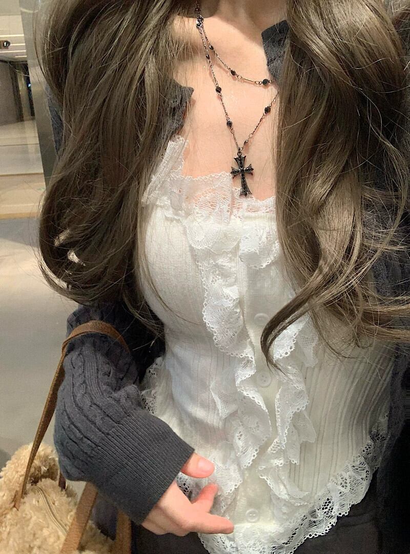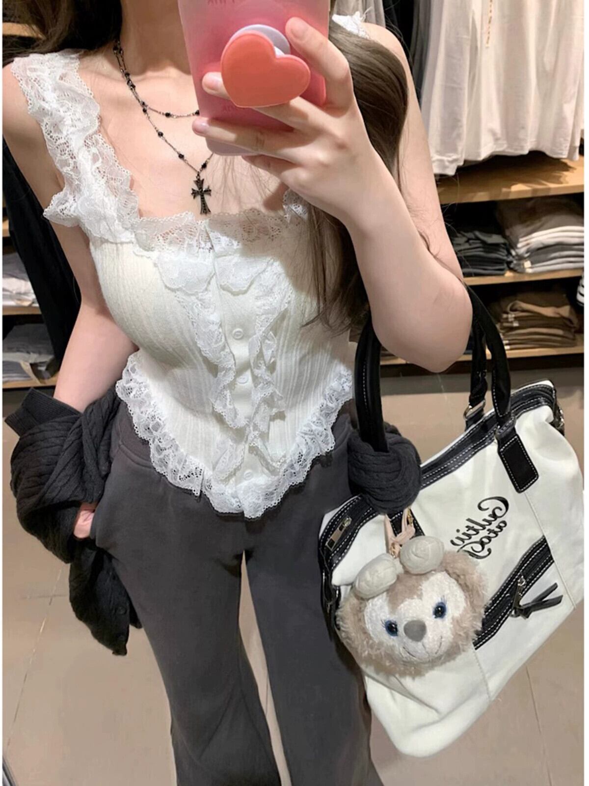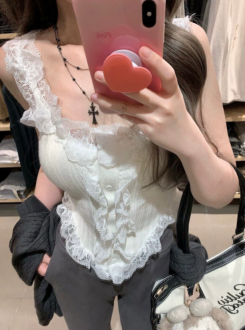 ニットキャミソール女性の秋 2023 純粋な欲望スタイルフリルレーススプライシングスリムフィットトップ オータム 秋物 ピュア missk35858533162