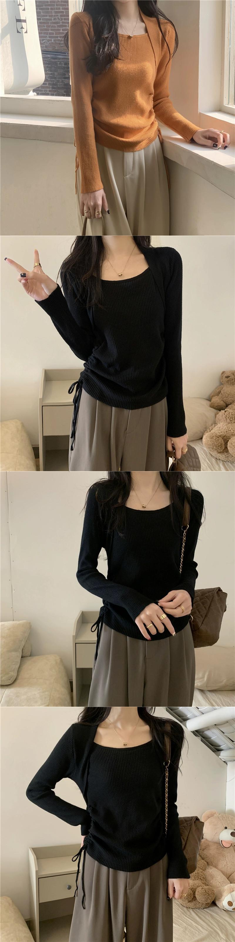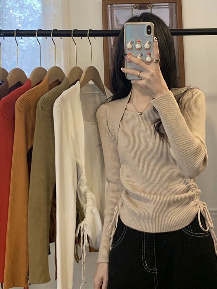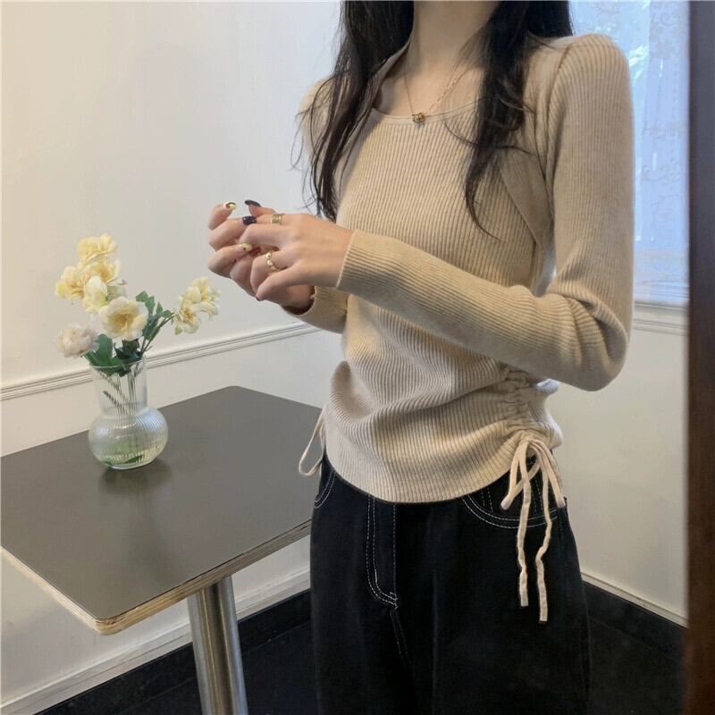ed と控えめなニットセータートップス秋の新スクエアネック巾着ニッチスリム長袖底セーター女性 ロング オータム 秋物 スクウェア missk13630239860