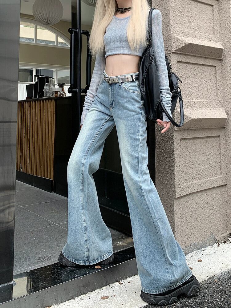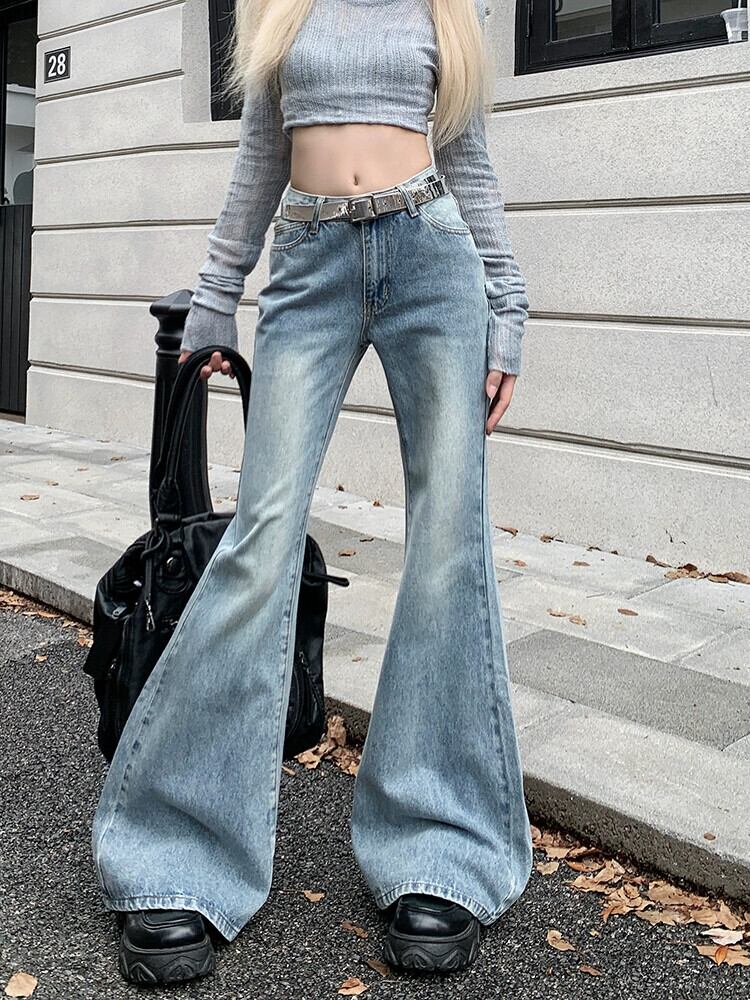 Cocoli自家製秋バージョン2023新作ハイウエストスリムファッションブルーワイドレッグフレアパンツとジーンズ レッド オータム 秋物 missk81361119630