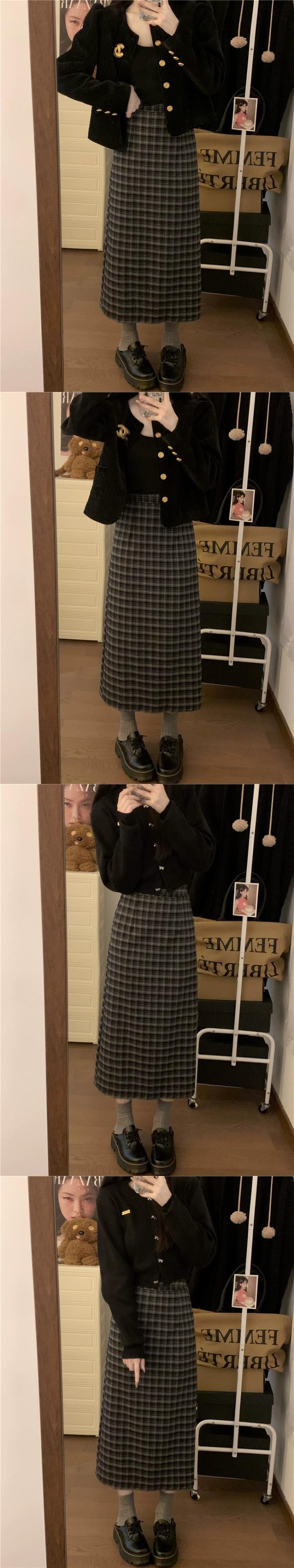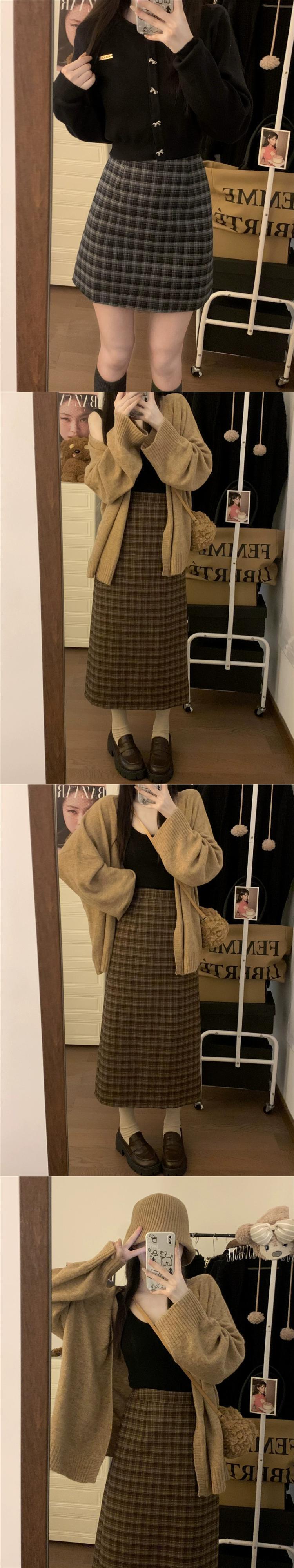 色:黒のチェック柄スカート,コーヒーチェック柄スカート,黒のチェック柄ミディスカート,コーヒーチェック柄ミディスカート