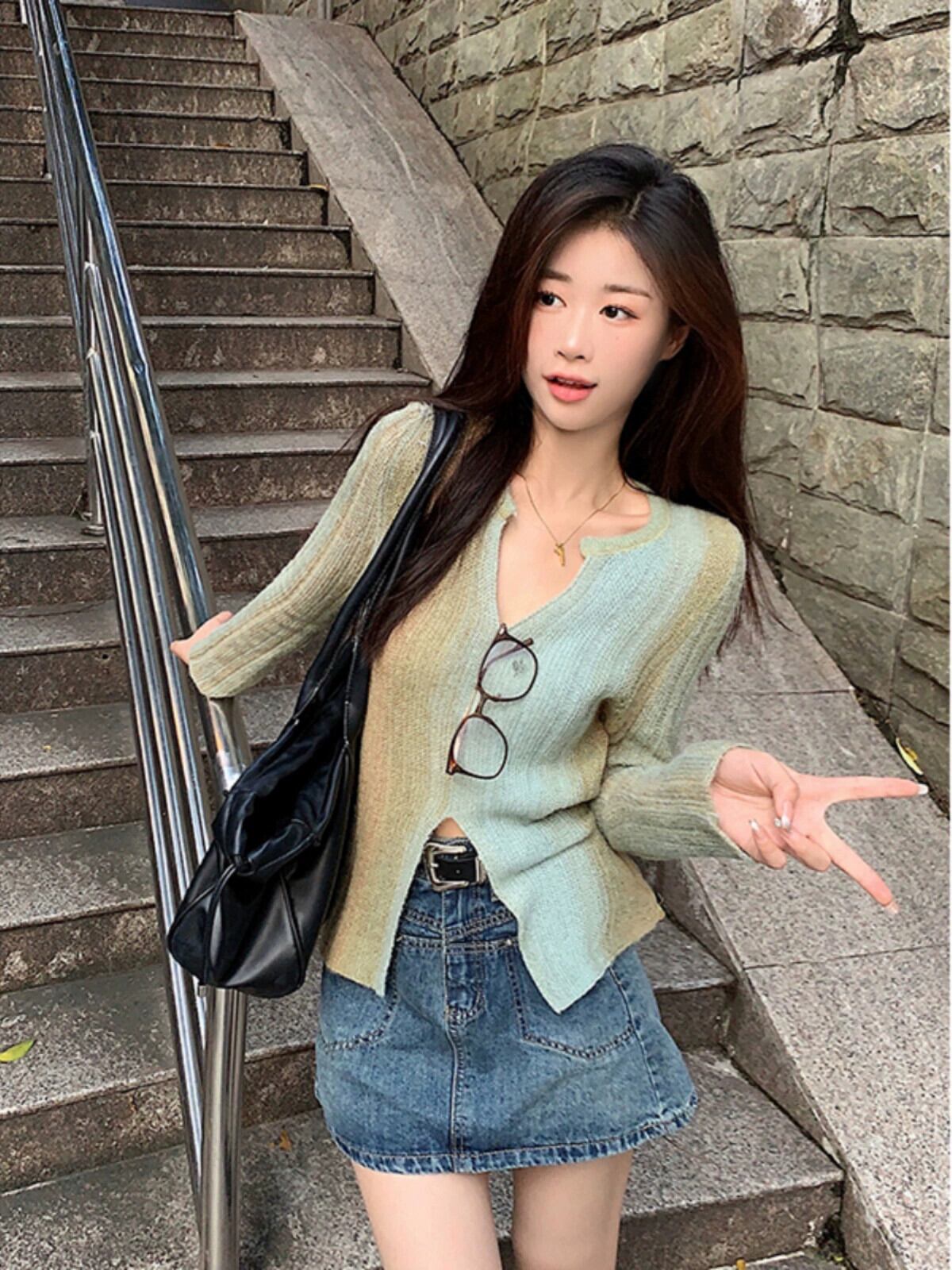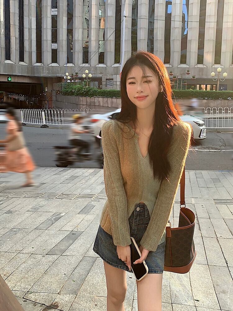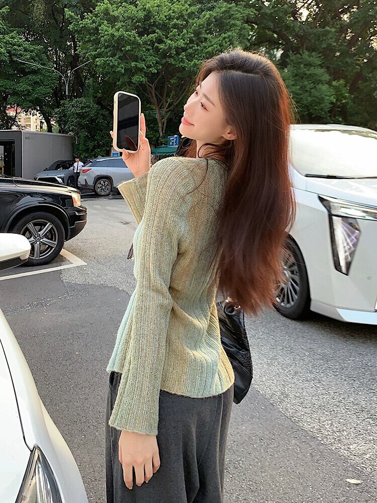 グラデーションカラー V ネック長袖セーター女性秋バージョン 2023 新しいスリムフィットデザインシックなトップ ロング オータム 秋物 Vネック missk45429481844