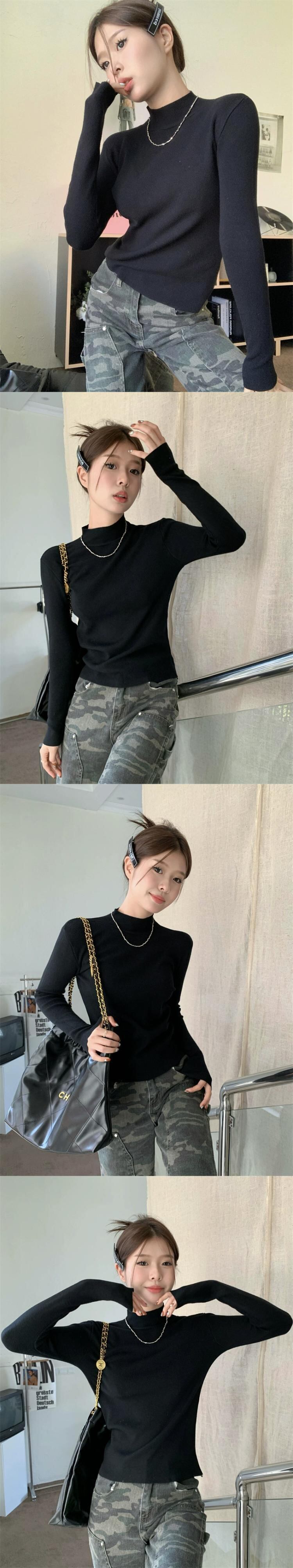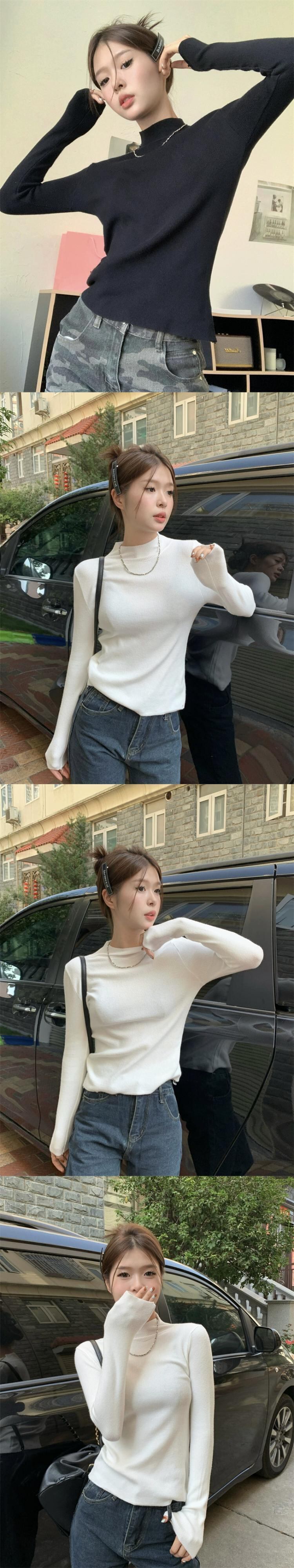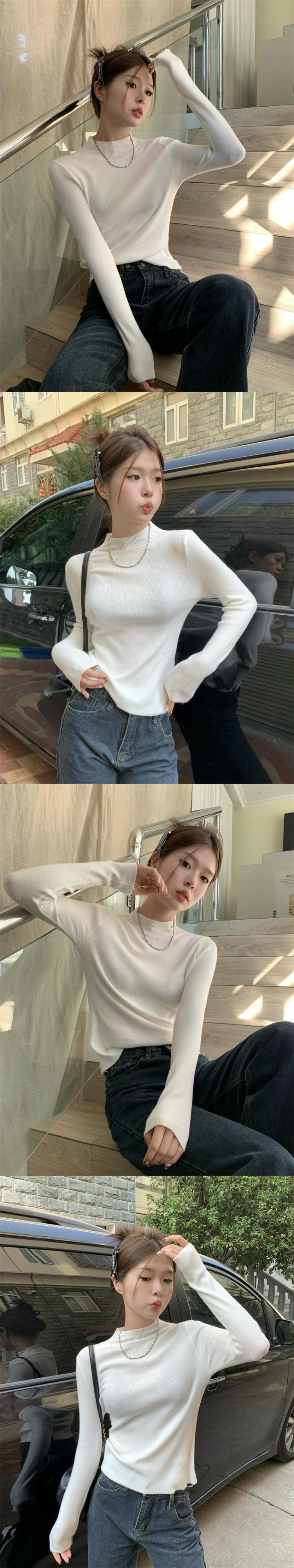 ハーフタートルネック長袖セーター女性秋バージョン 2023 新しい無地多用途痩身インナーレイヤリングシャツ ロング オータム 秋物 ソリッドカラー missk72072377562