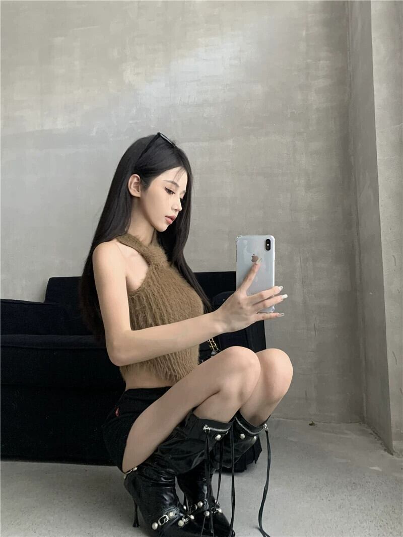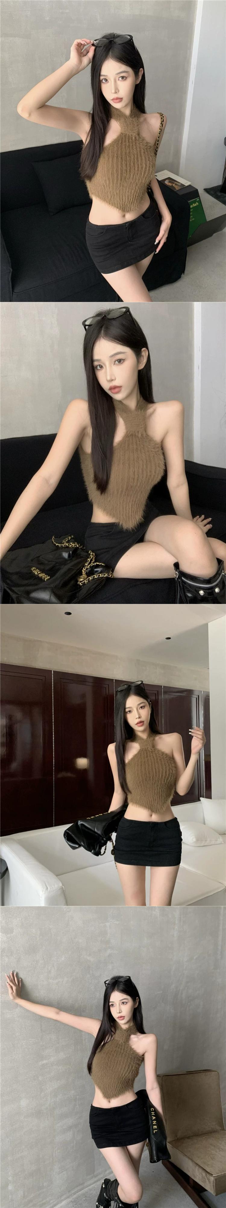 2023 初秋の新スタイルのインターネット有名人の気質がストリートに登場模造ミンクヘアショートスタイルスリムニットベストトップ婦人服 オータム 秋物 missk78382903304