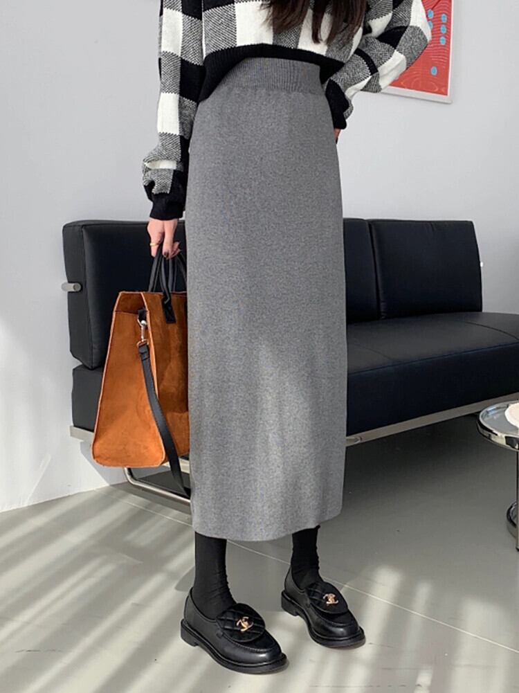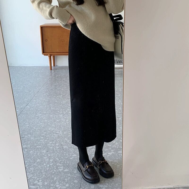 冬の優しいスタイルのニットスカートとセーター秋冬 2023 新しい気質黒スリムヒップヒップロングスカート女性 ブラック オータム 秋物 ウィンター 冬物 missk91446849228