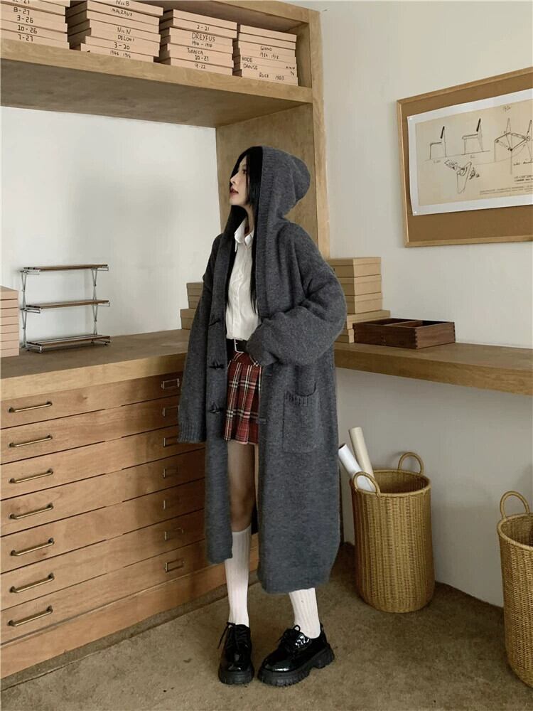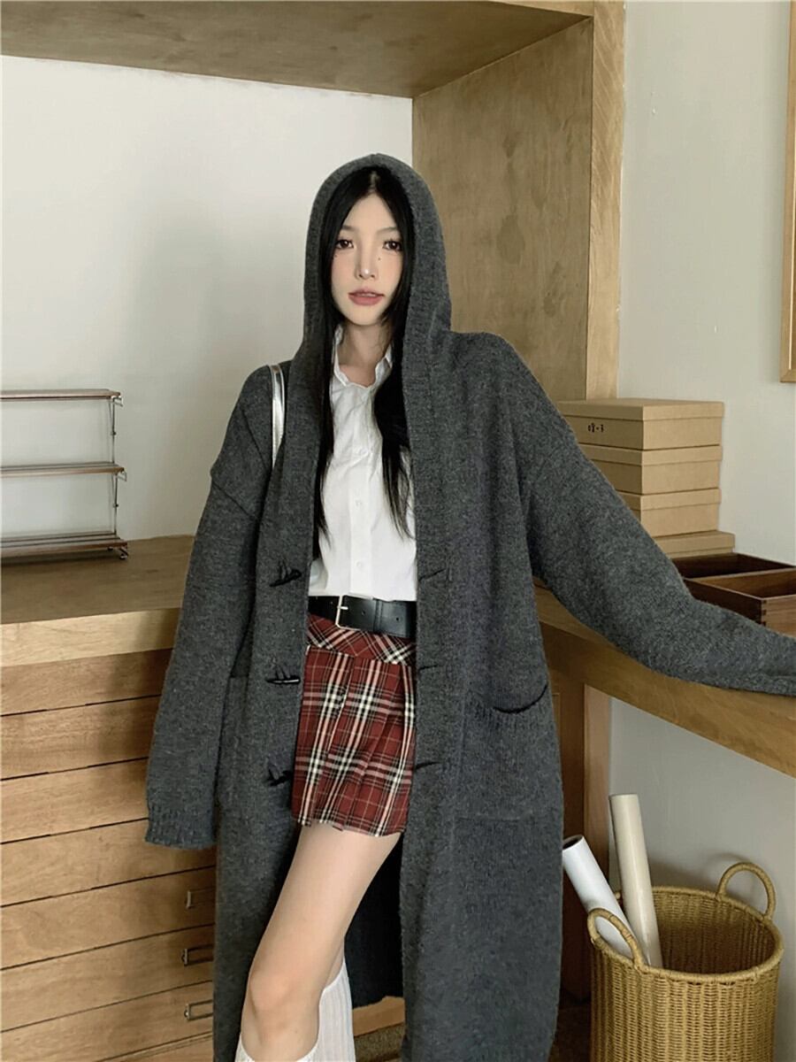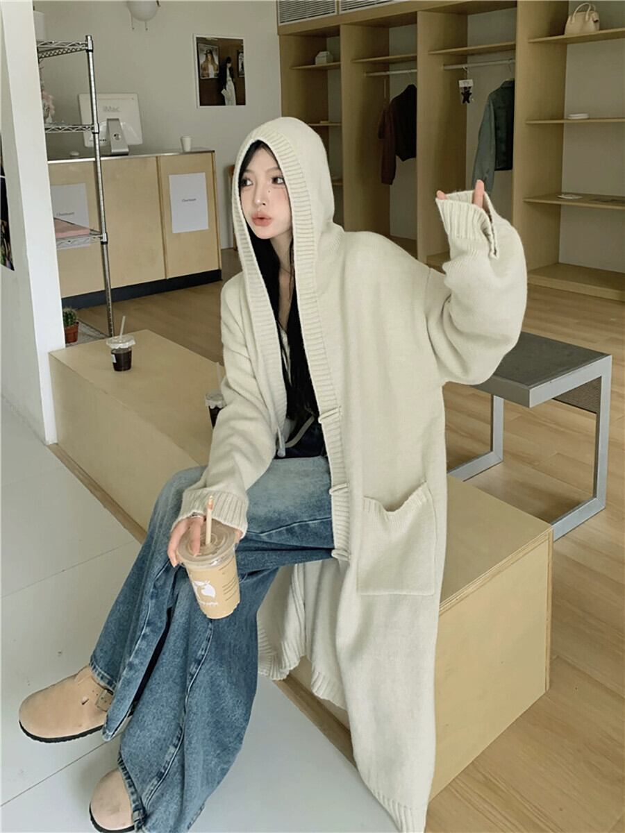 ロング肥厚セータージャケット女性の秋冬 2023 新しいスタイル怠惰なスタイルのホーンボタンルーズ長袖カーディガン オータム 秋物 ウィンター 冬物 missk42556503745