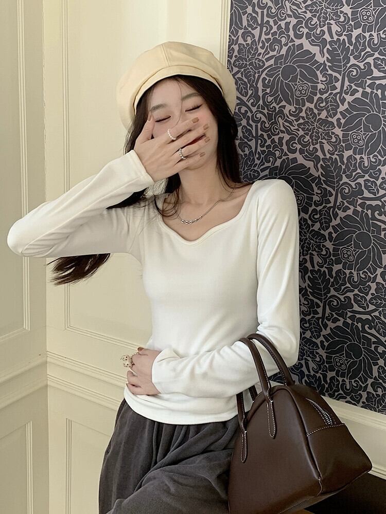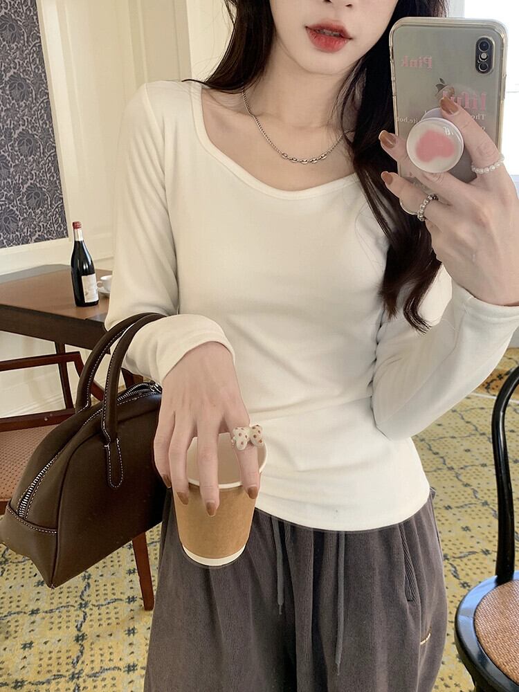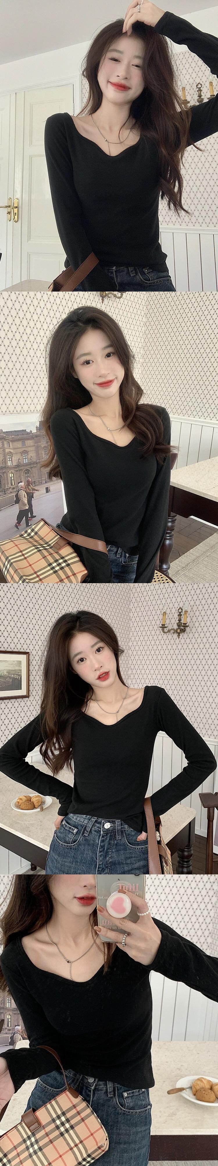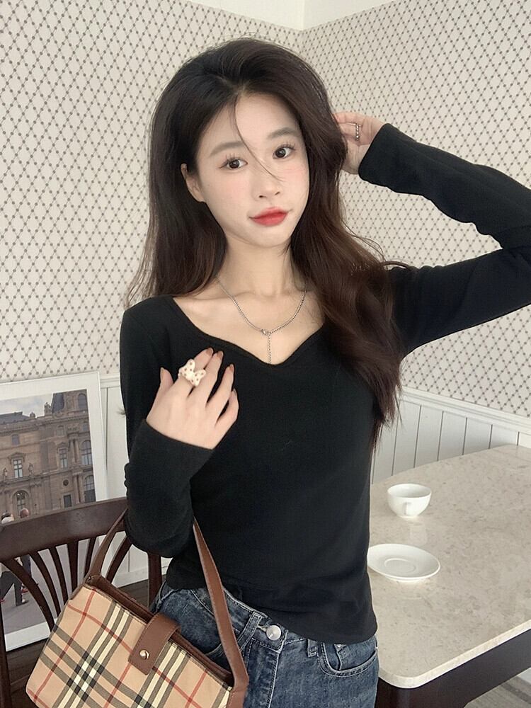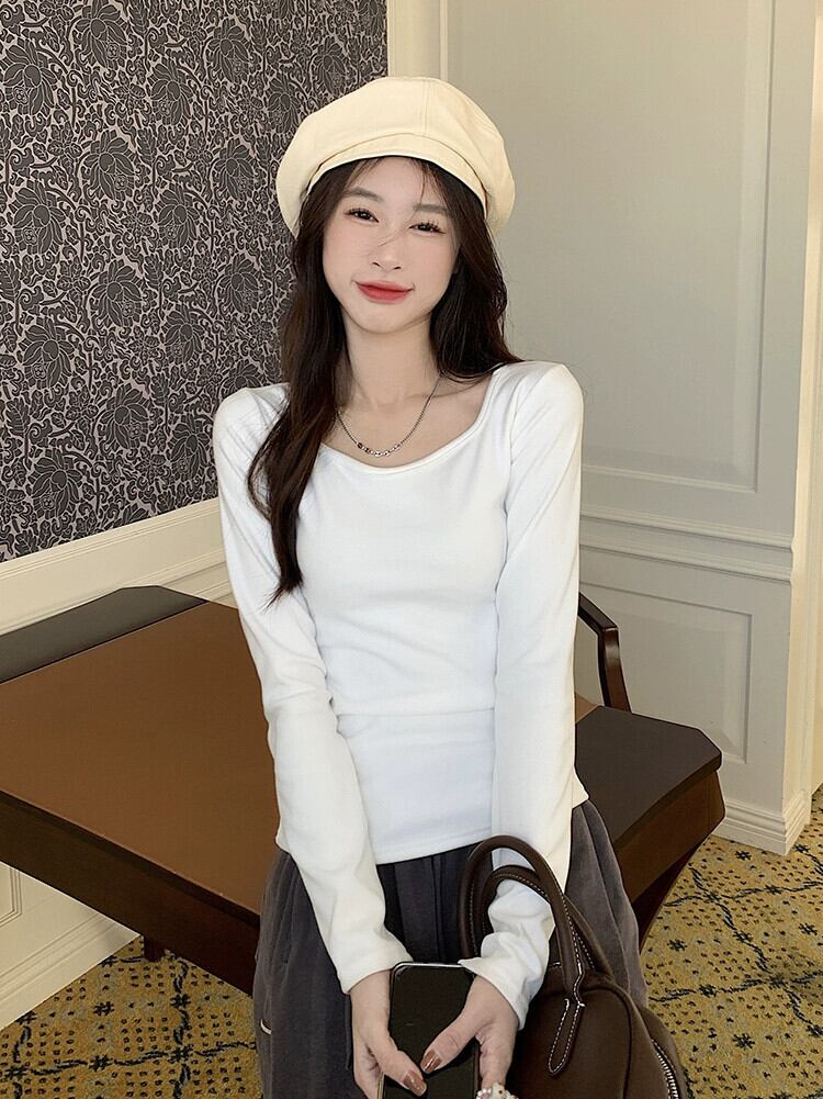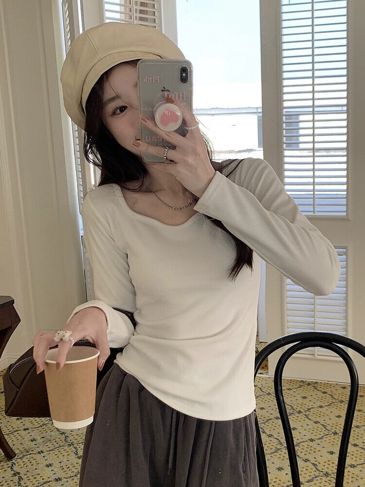 長袖 Tシャツ女性シックな秋 2023 新しい白右肩スリムデザインボトシャツトップイン ロング ホワイト オータム 秋物 missk97304324453