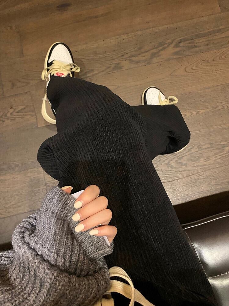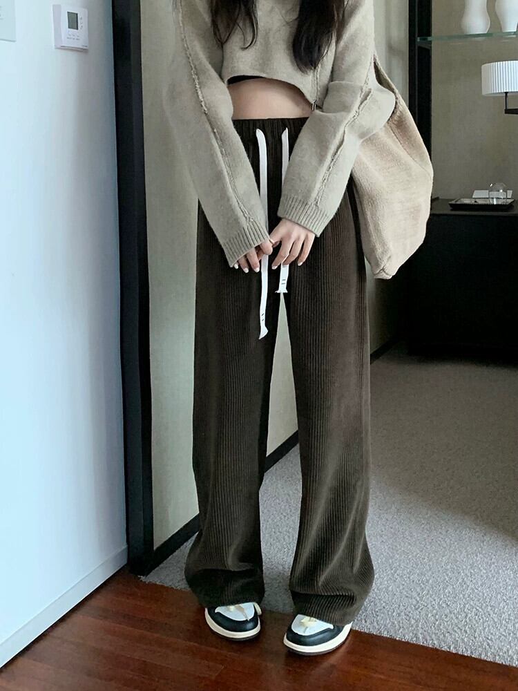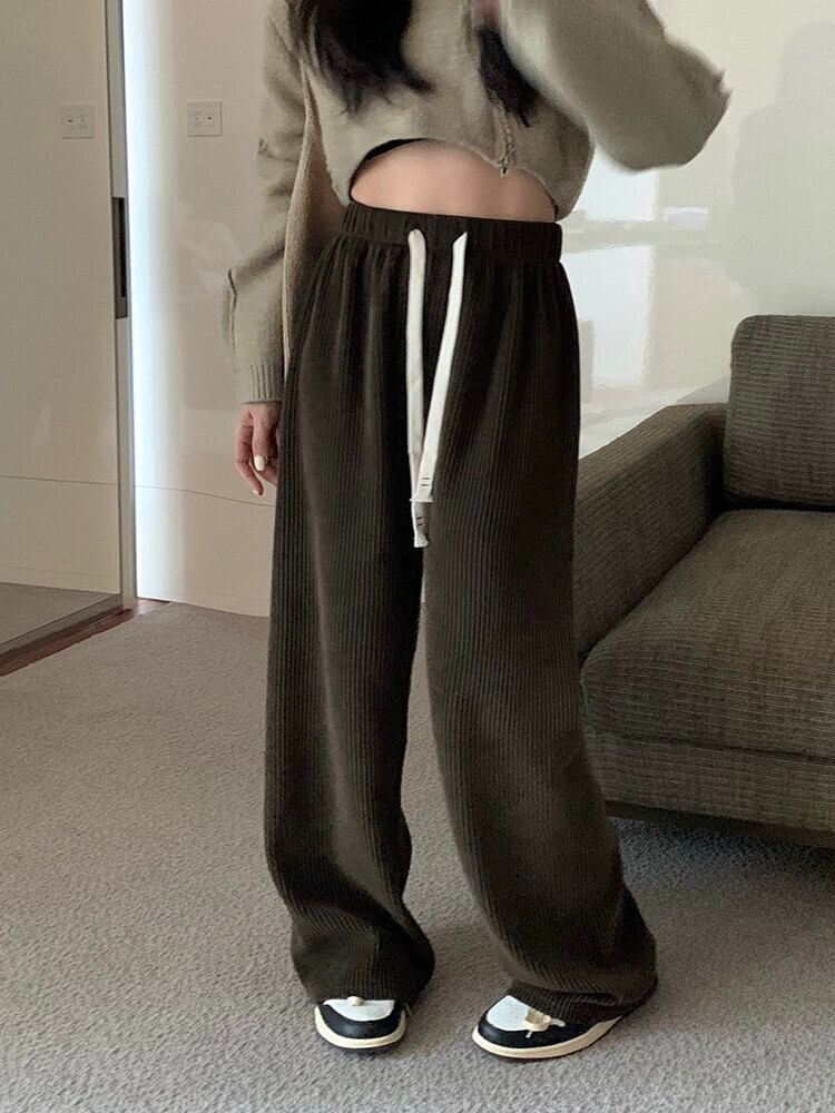 肥厚ワイドレッグパンツの女性秋バージョン 2023 新しい弾性ウエスト巾着ハイウエストスリムカジュアルパンツ ハイウェスト エラスティック 伸縮 オータム 秋物 missk36056903893