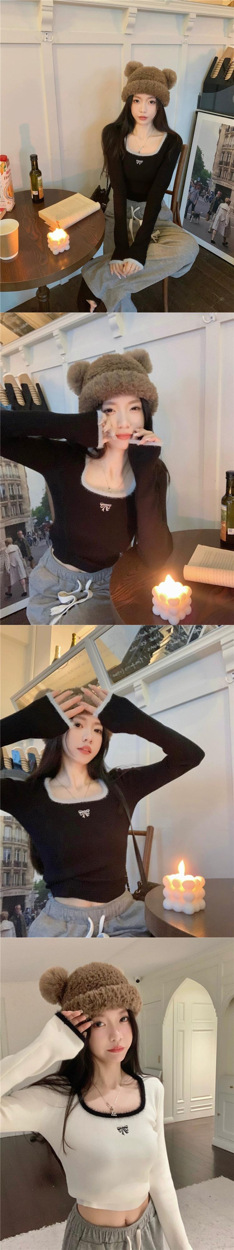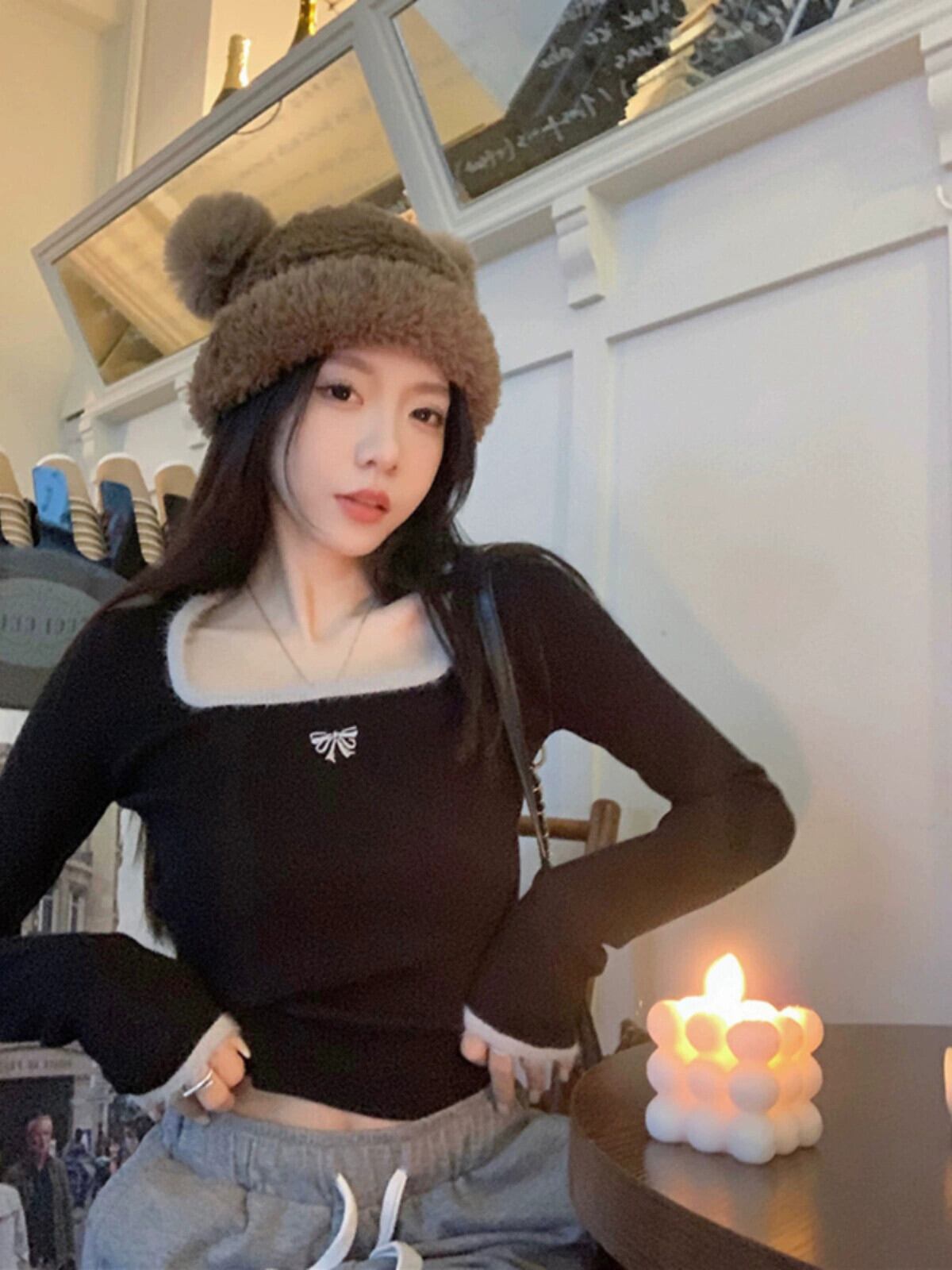 ホットガールスクエアネックソフトワックス状ボトミングセーター女性の秋バージョン 2023 スリムフィットショート長袖トップ ロング オータム 秋物 スクウェア missk35567049015