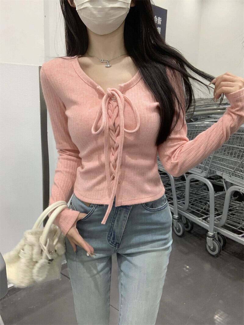 純粋な欲望スタイル長袖セーター女性秋バージョン 2023 新しいスリムフィットストラップデザインボトミングトップ ロング オータム 秋物 missk1327694176