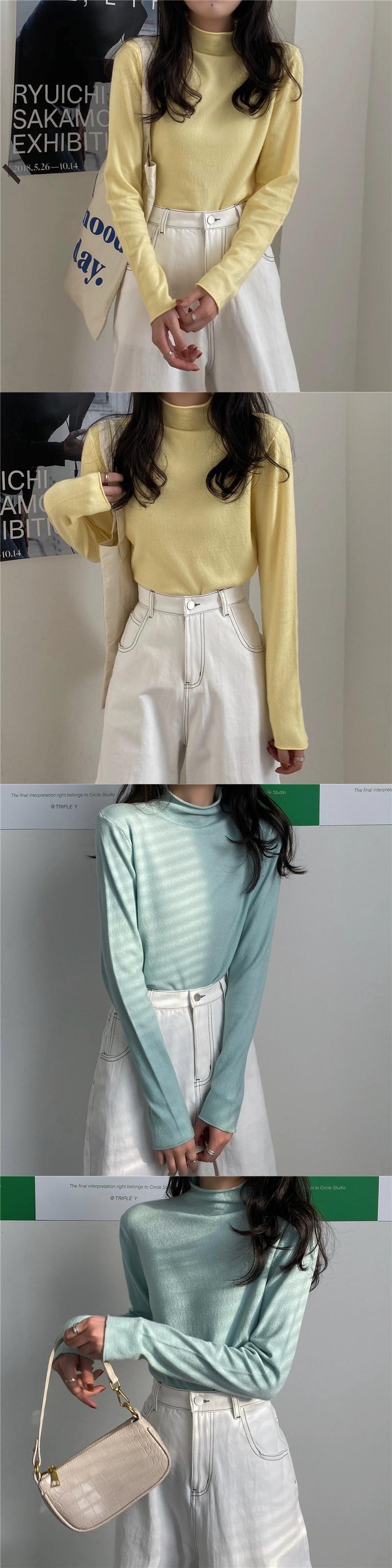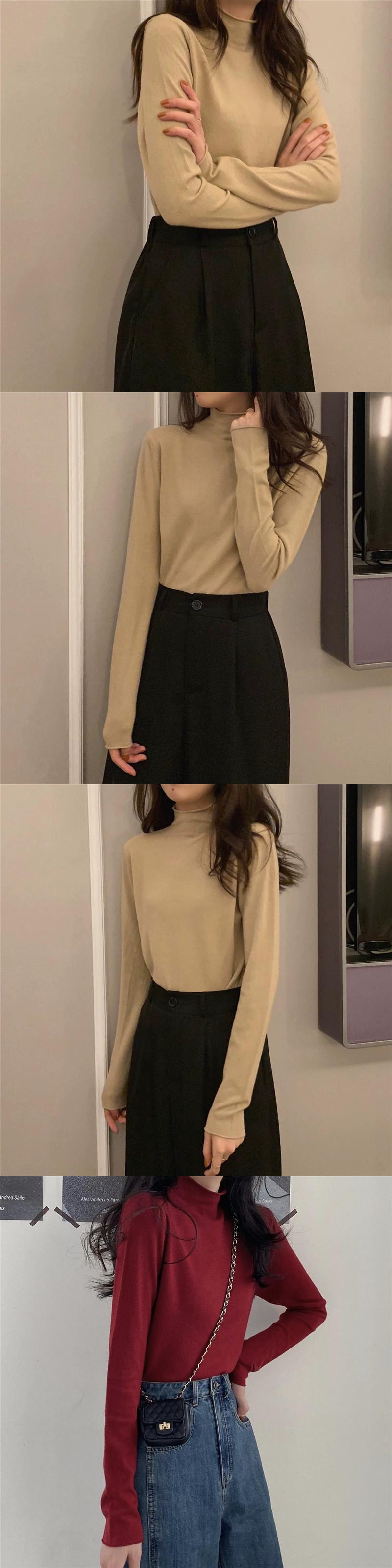 ハーフタートルネック無地ボトシャツ女性秋アウターニットセーター 2023 新しい多用途セーター内側長袖トップ ロング オータム 秋物 ソリッドカラー missk53730621585