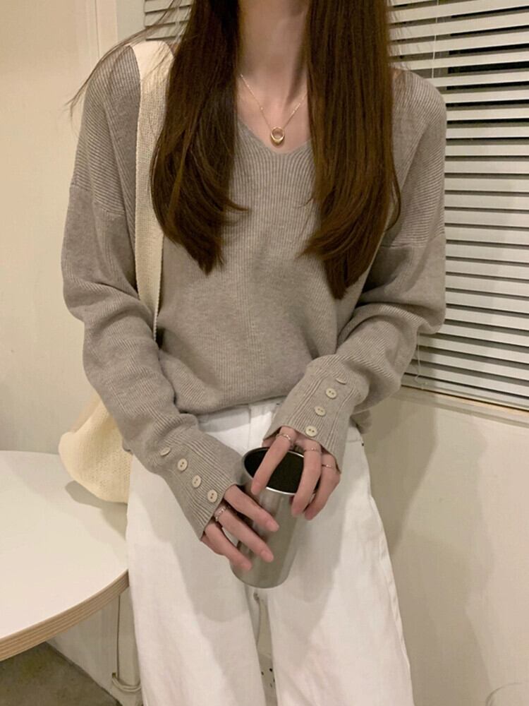 フランスの秋のニットウェア 2023 新スタイル怠惰なスタイルの春と秋のデザインルーズで優しいシックな長袖トップス女性 ロング スプリング 春物 オータム 秋物 missk72481796405