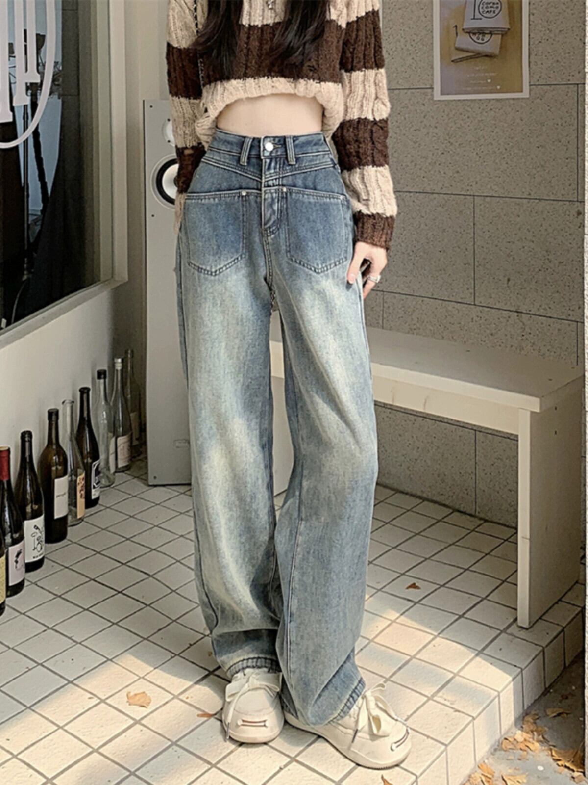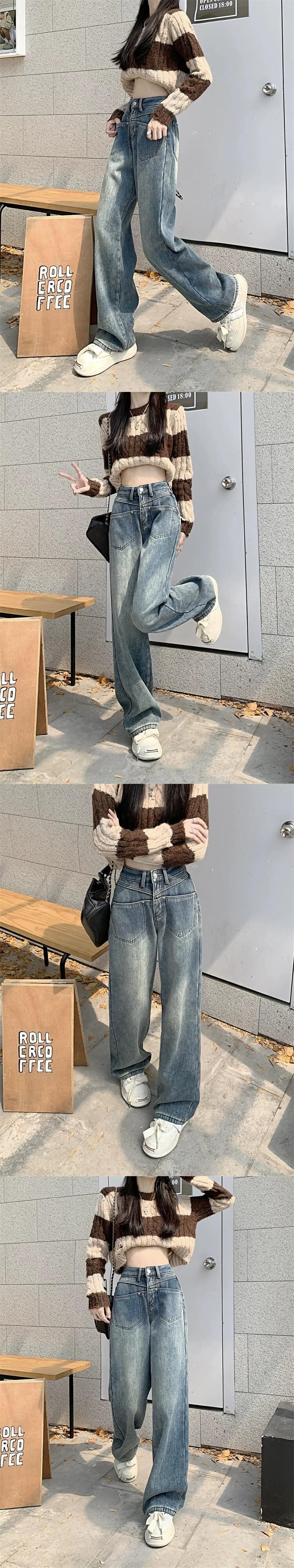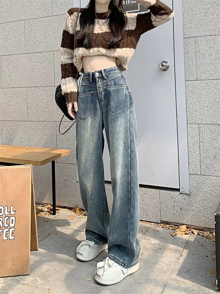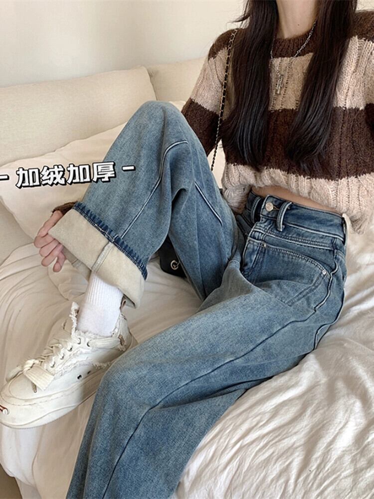 ベルベット肥厚ジーンズ女性、秋バージョン 2023 新デザインハイウエスト痩身ストレートワイドレッグフロアモップパンツ ハイウェスト オータム 秋物 ワイドパンツ missk22142965622