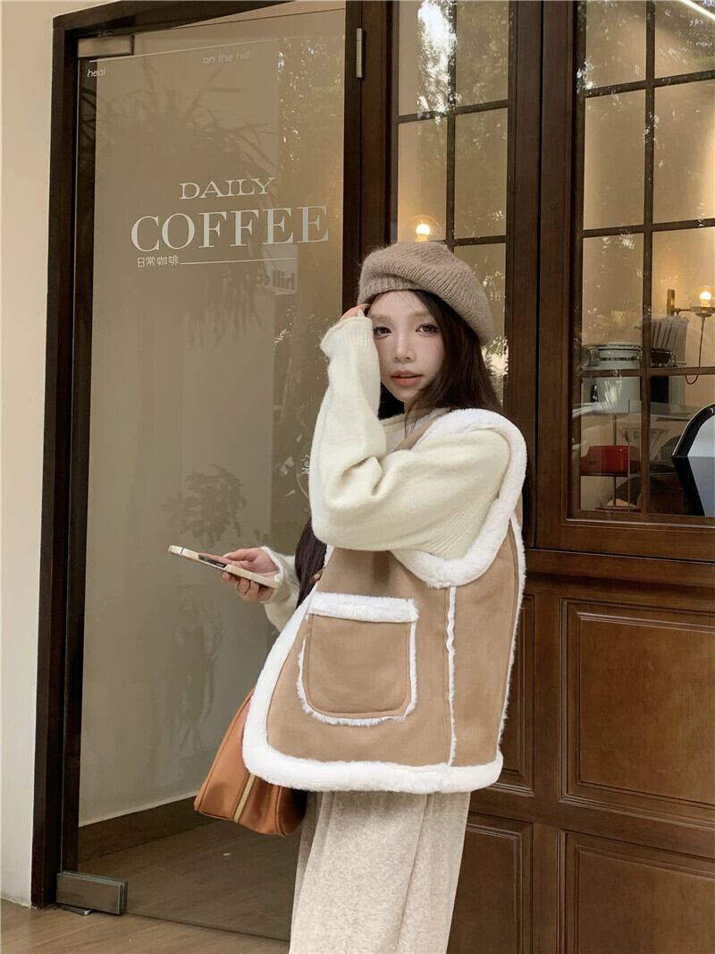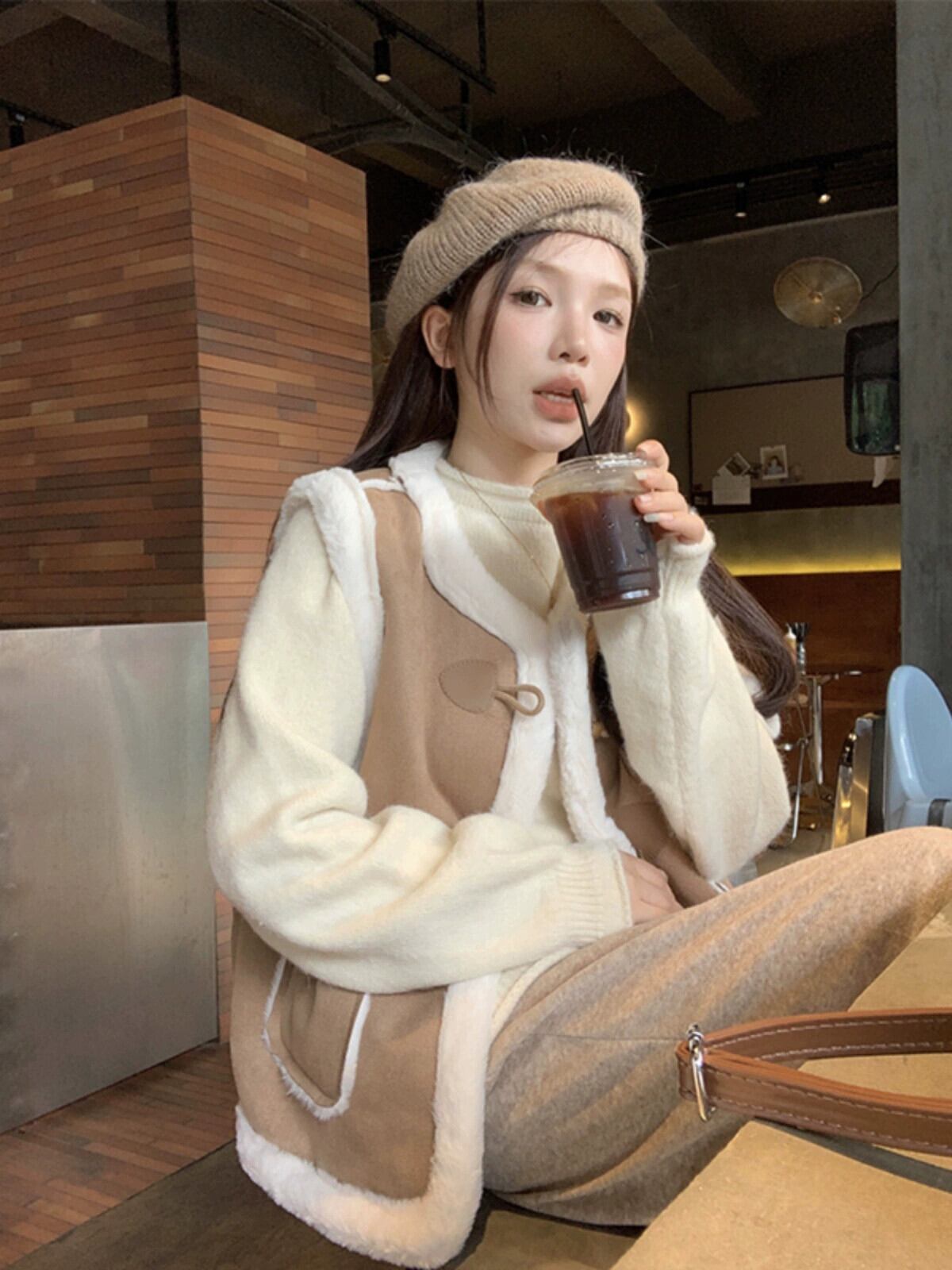 模造ラムウールベストジャケット女性秋冬 2023 新しいスタイルのフランスのハイエンドホーンボタンデザインアウタートップ オータム 秋物 ウィンター 冬物 missk62534936647