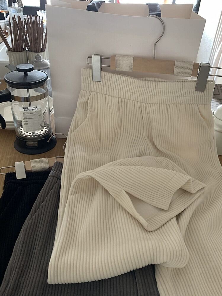コーデュロイスリットワイドレッグパンツの女性の秋冬 2023 新しいハイウエスト痩身肥厚暖かいストレートカジュアルロングパンツ オータム 秋物 ウィンター 冬物 missk37313854305