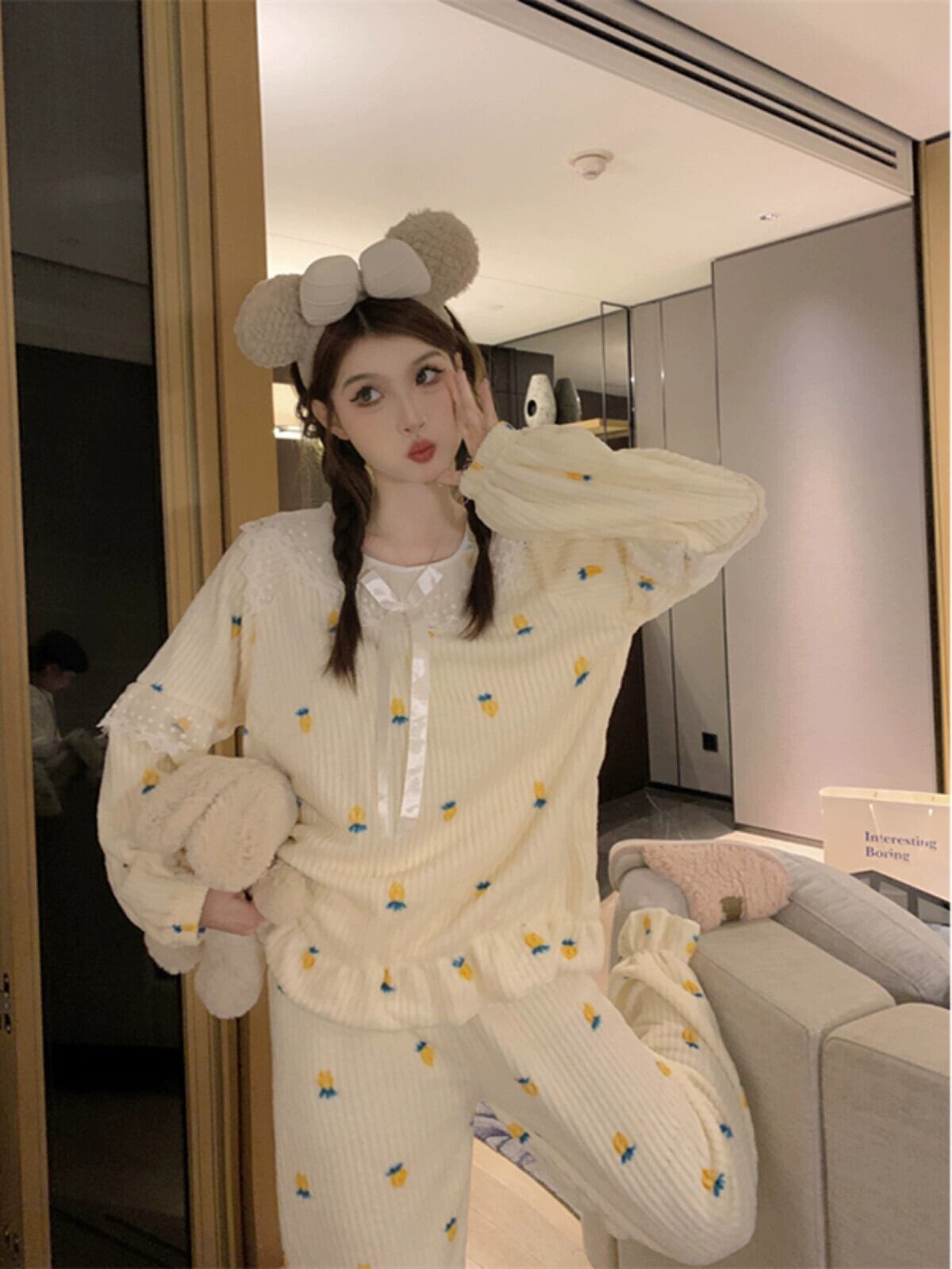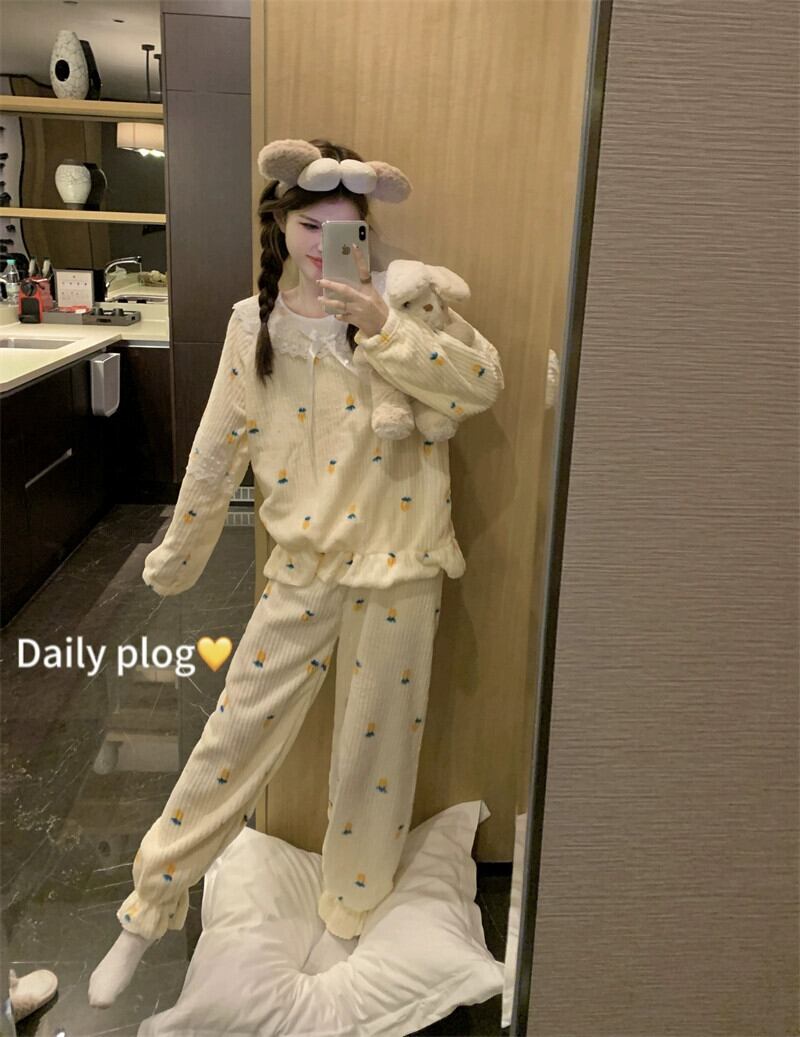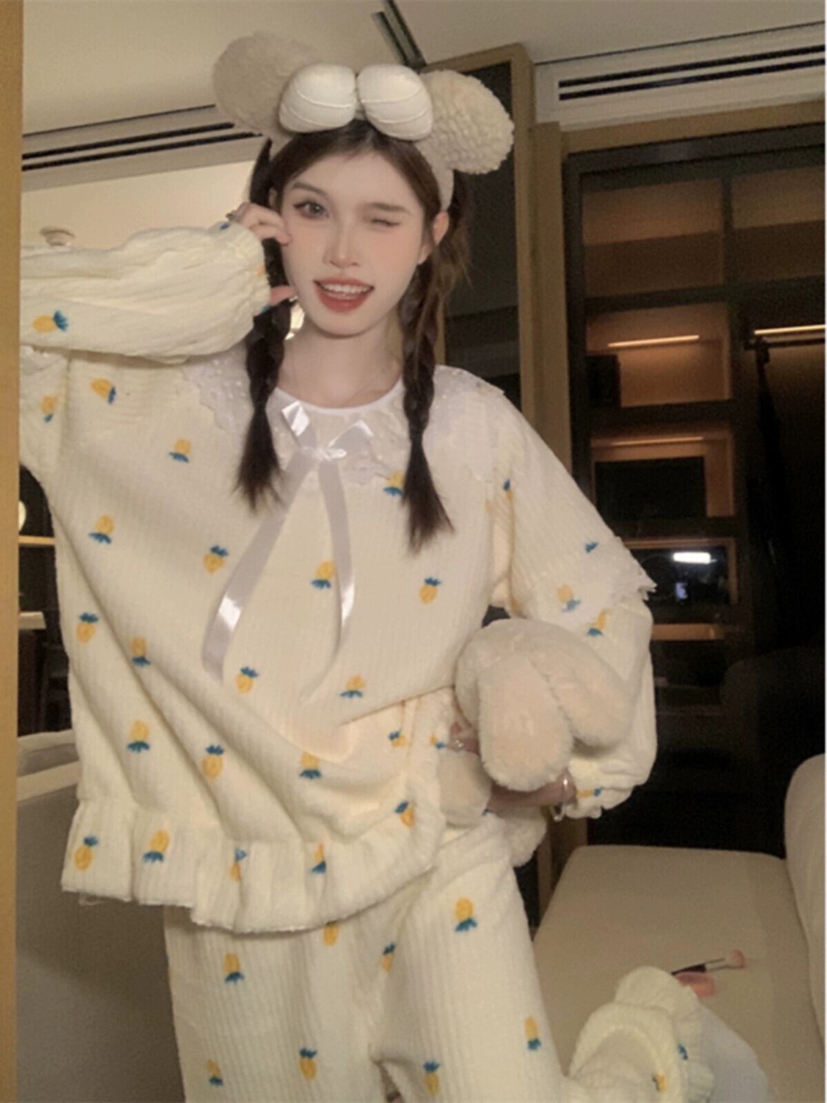 ぬいぐるみ肥厚暖かいコーラルベルベットかわいいプリンセススタイル長袖パジャマ女性秋 2023 新しいホームウェアセット ロング 大人ガーリー スウィート キュート カジュアル オータム 秋物 missk86088948681