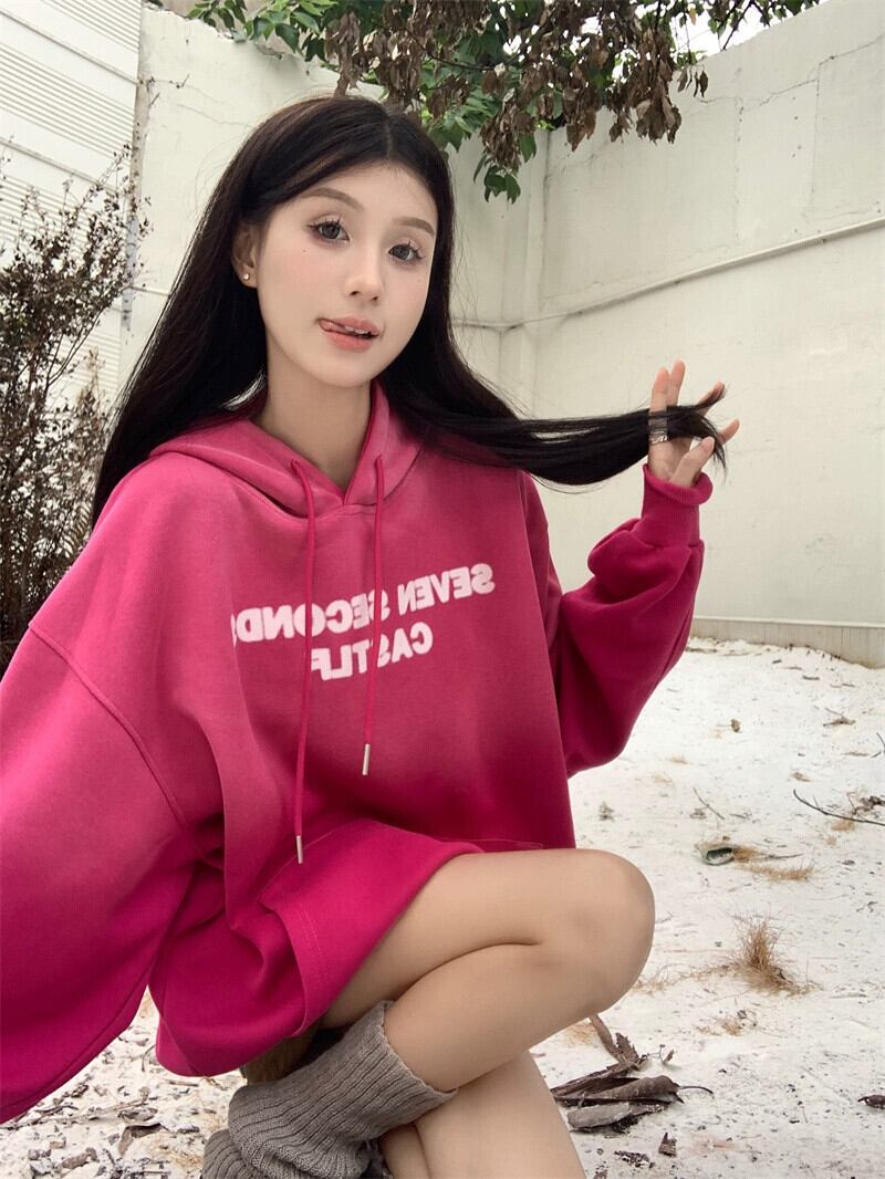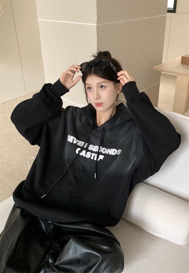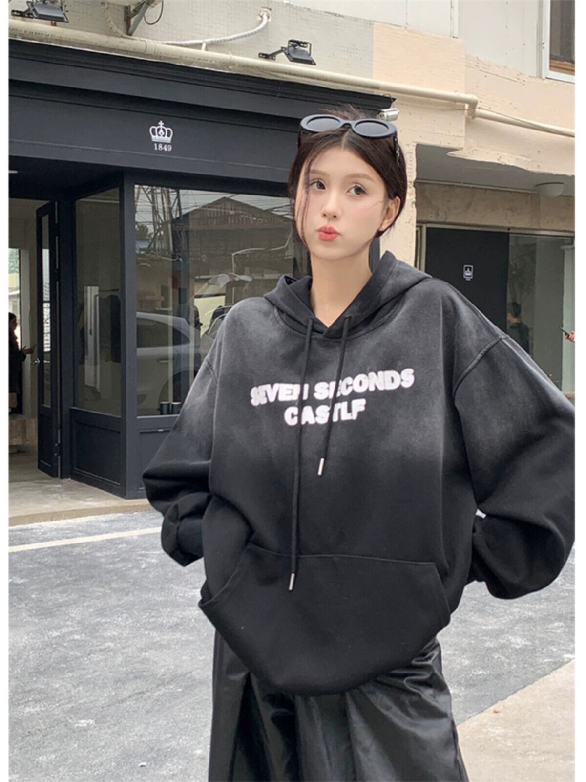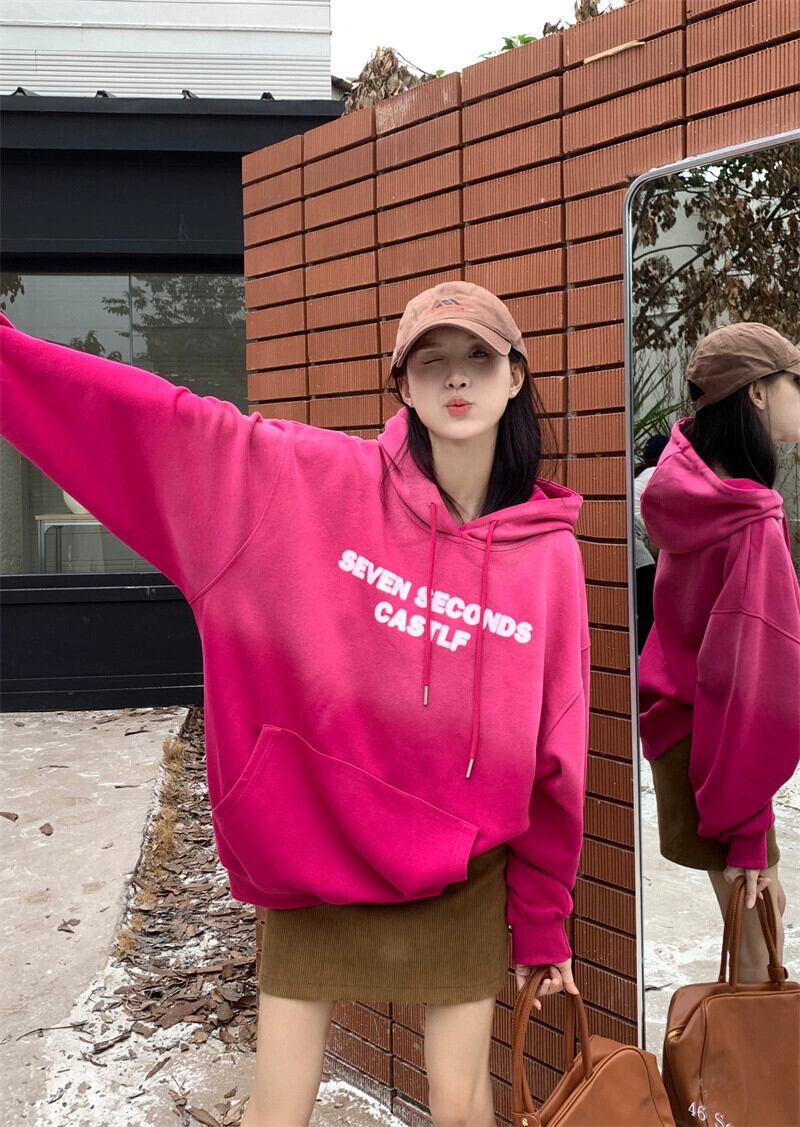 グラデーションカラーのスウェットシャツの女性の秋と冬 2023 新しいレトロなウォッシュレタープリント BF スタイルのフード付きルーズ長袖トップ ロング オータム 秋物 ウィンター 冬物 missk58285095497