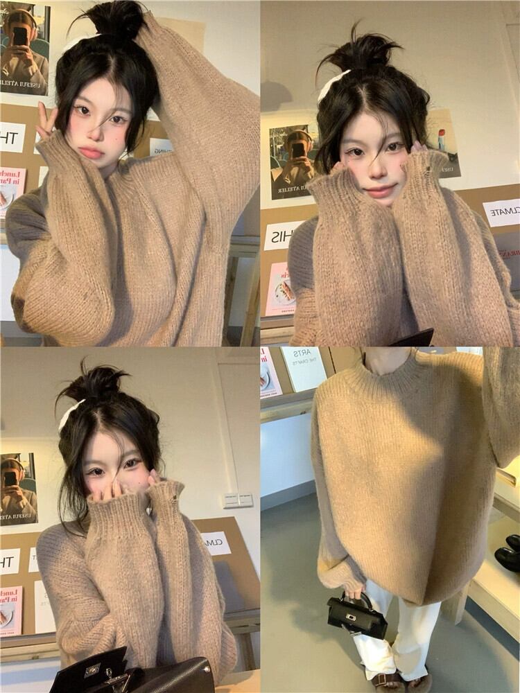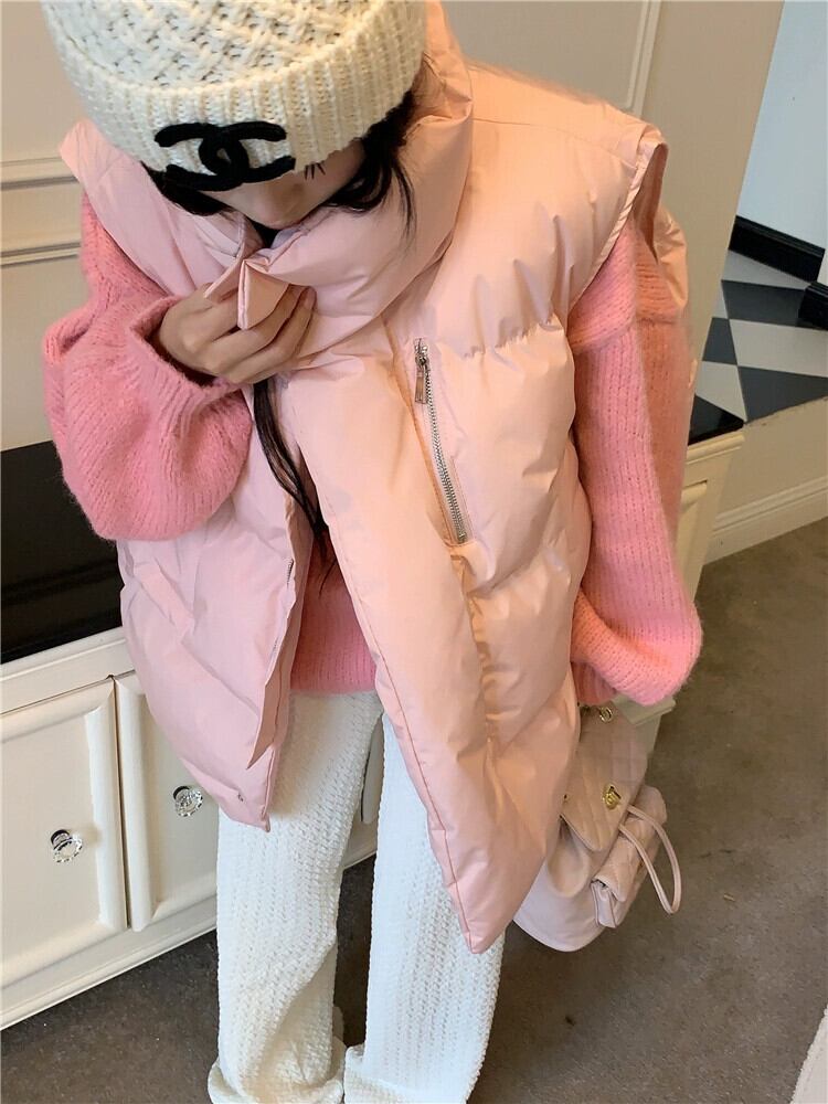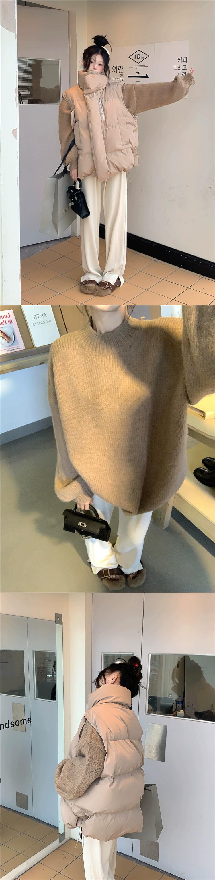 厚く暖かいスタンドカラーアウター綿ベスト長袖ニットセーター女性の秋と冬の 2023 新しいファッションツーピースセット ロング コットン オータム 秋物 ウィンター 冬物 missk87654468319
