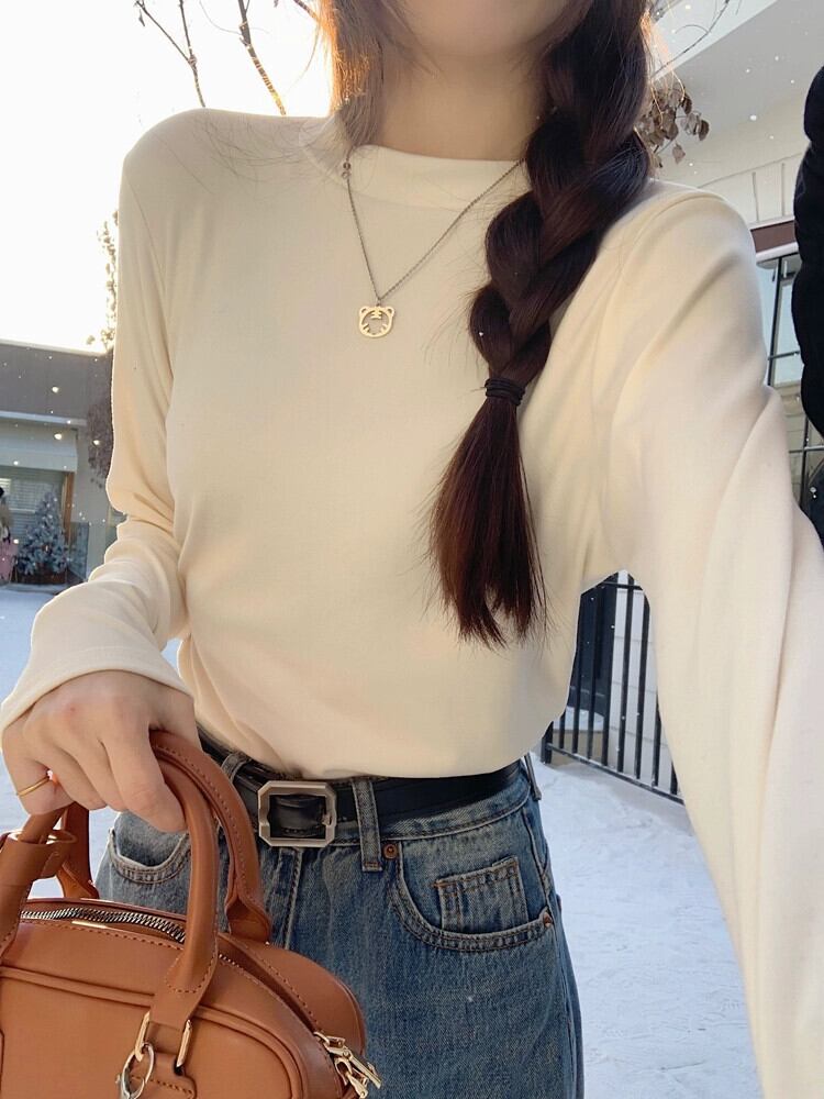 Miss Cocoli ココナッツオイルスキン栄養ソフトワックス状ボトリングシャツ秋と冬スリム長袖白 Tシャツトップ女性のイン ロング ホワイト オータム 秋物 ウィンター 冬物 missk83496855455