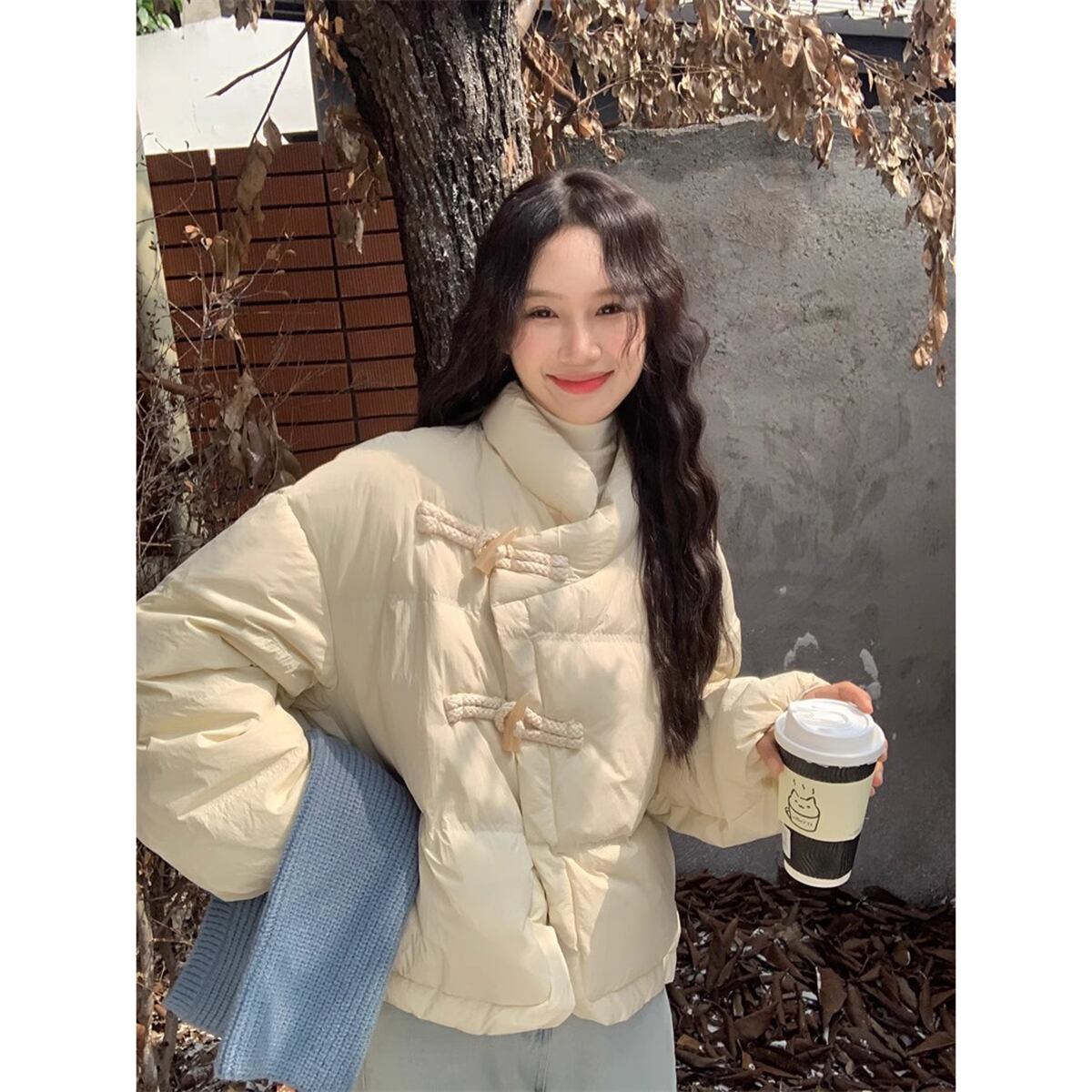 スタンドカラーホーンボタン長袖コットンコート女性の冬 2023 新しいファッション多用途デザイン気質コットンコートトレンド ロング ウィンター 冬物 missk94464711065