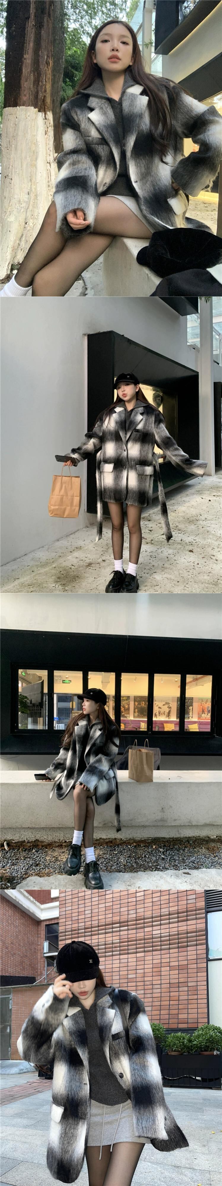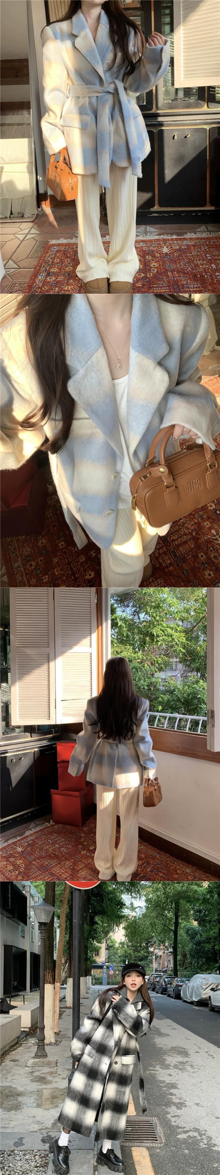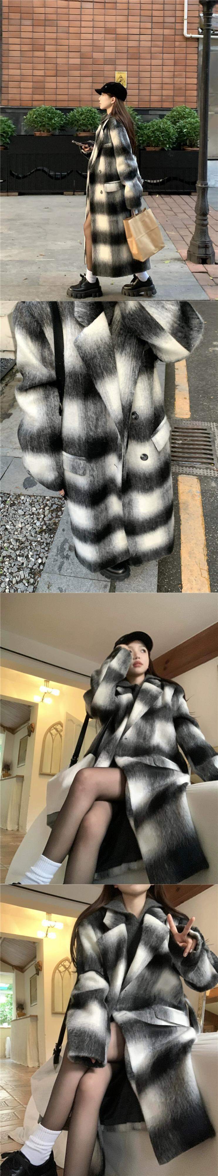 チェック柄ウールコートの女性の冬 2023 新しいハイエンドロングルーズ肥厚スタイル長袖ウールコート ウィンター 冬物 missk89293263945