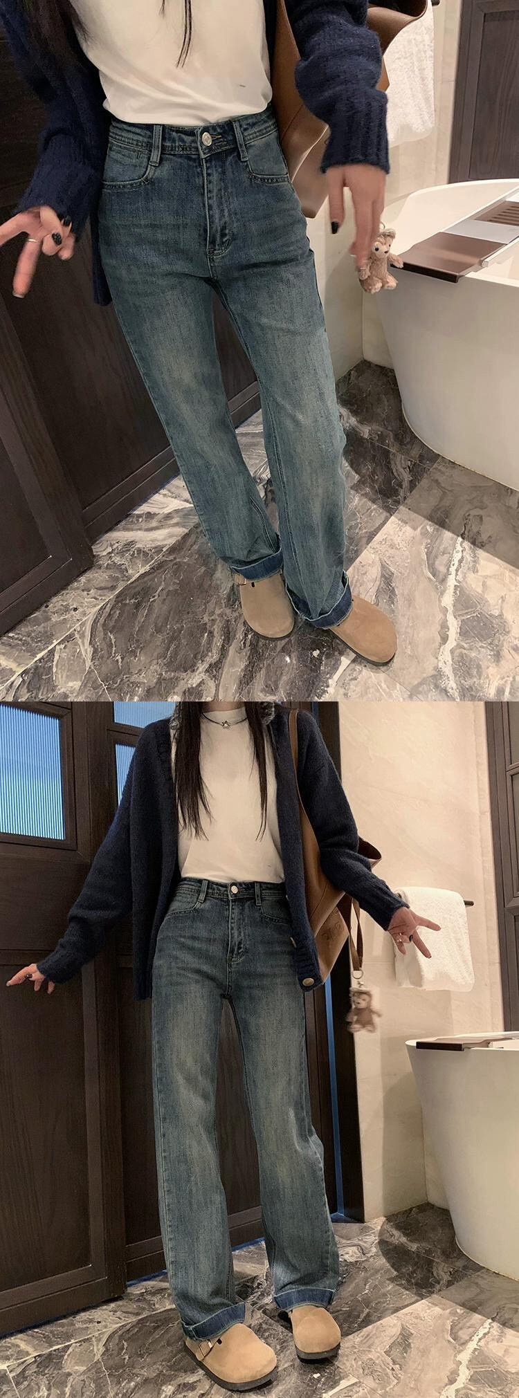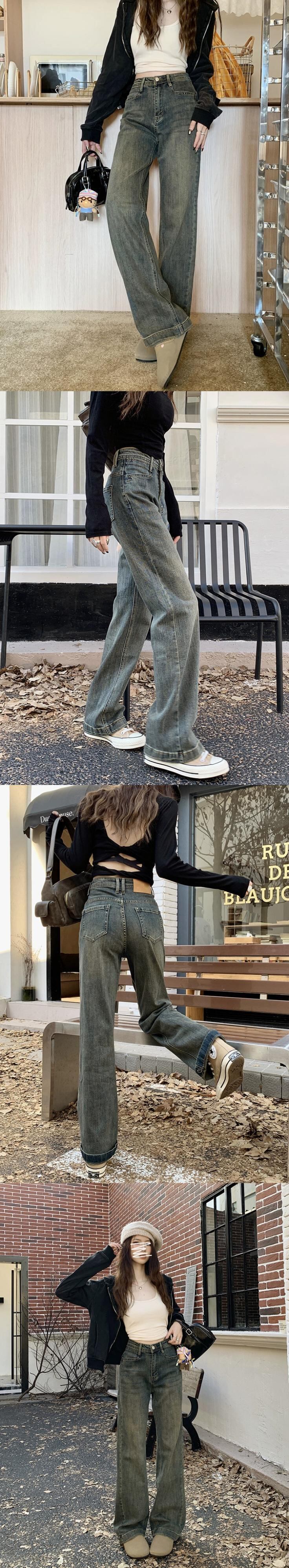 ベルベット肥厚ジーンズ女性、秋冬バージョン 2023 新しいハイウエストスリムファッションストレッチワイドレッグストレートパンツ オータム 秋物 ウィンター 冬物 missk9499968475