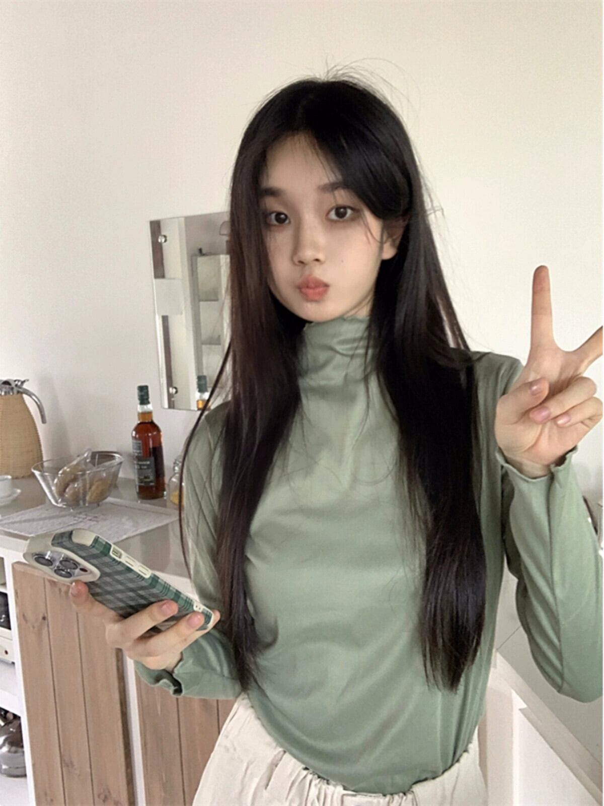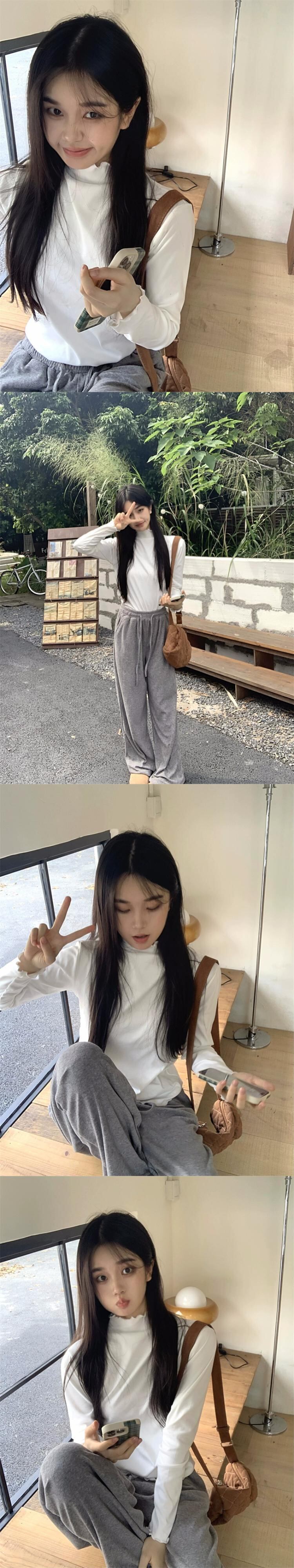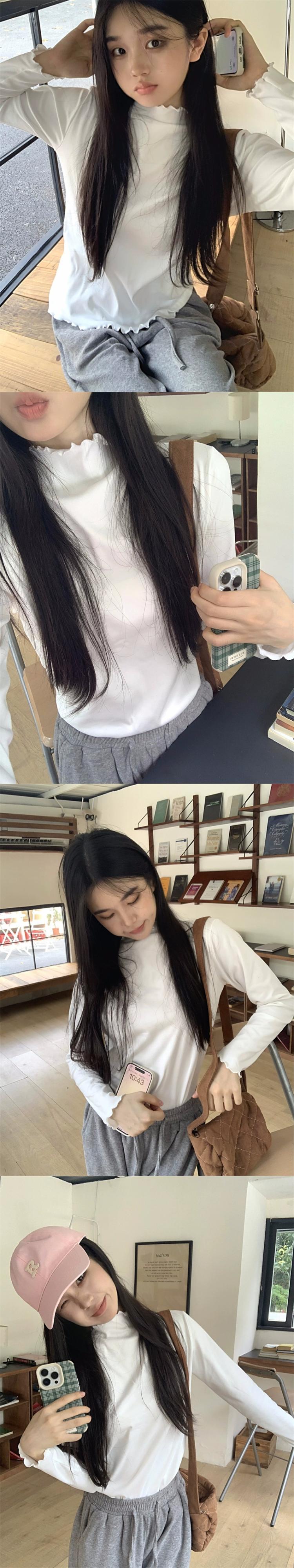菌エッジハイネック長袖ボトムシャツ女性の秋冬 2023 新しい白スリムフィットインナー Tシャツトップイン ロング ホワイト オータム 秋物 ウィンター 冬物 missk38472650083