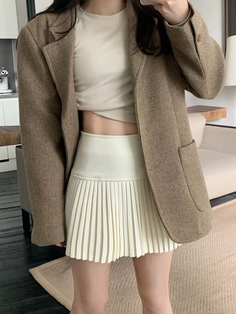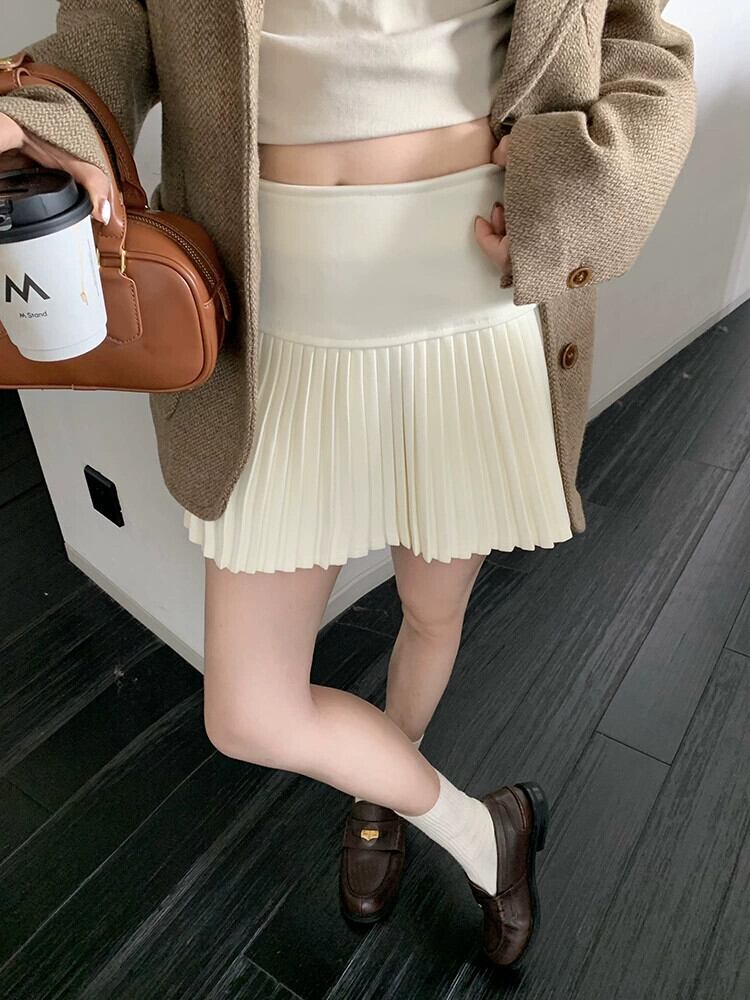 ウールプリーツスカートの女性の秋冬バージョン 2023 新しいハイウエストスリムファッション露出防止 A ラインショートスカート オータム 秋物 ウィンター 冬物 Aライン missk95312787620