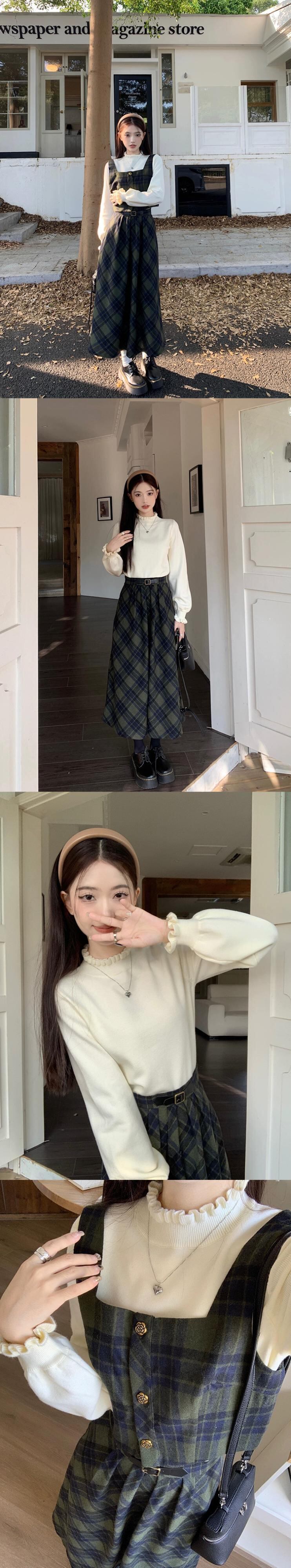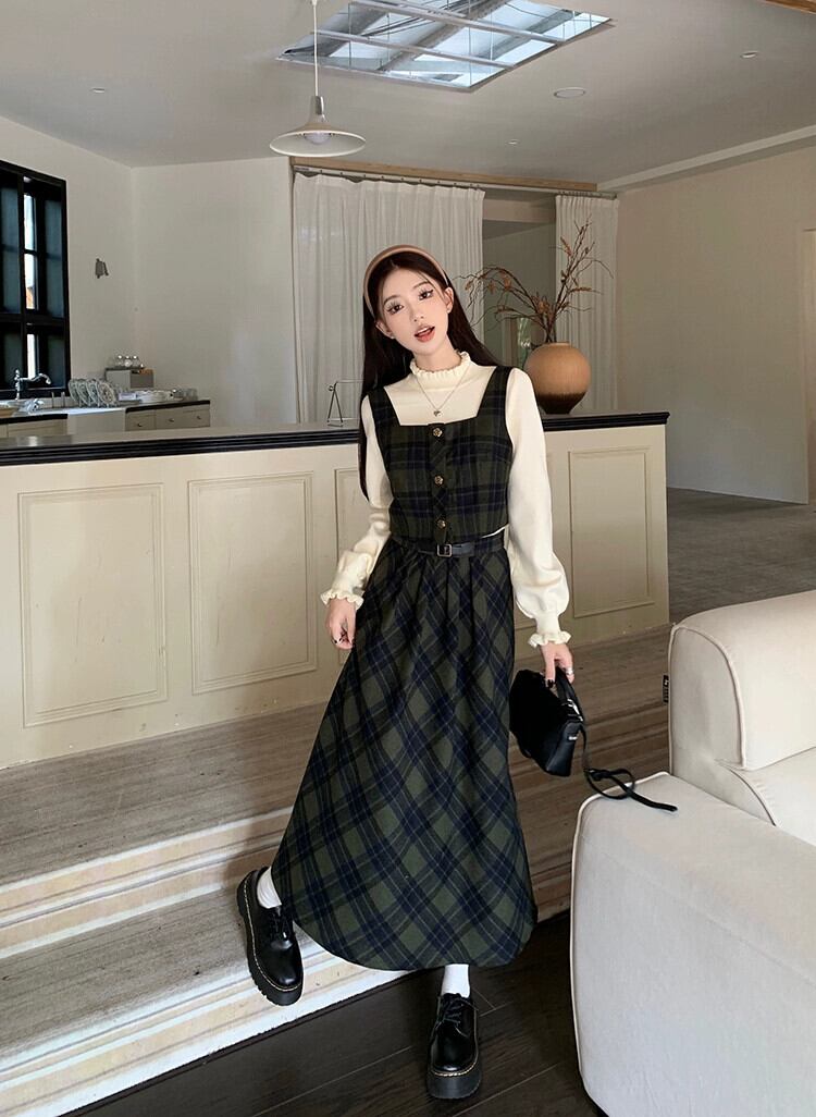 色:グリーンベスト,緑のスカート,アプリコットセーター