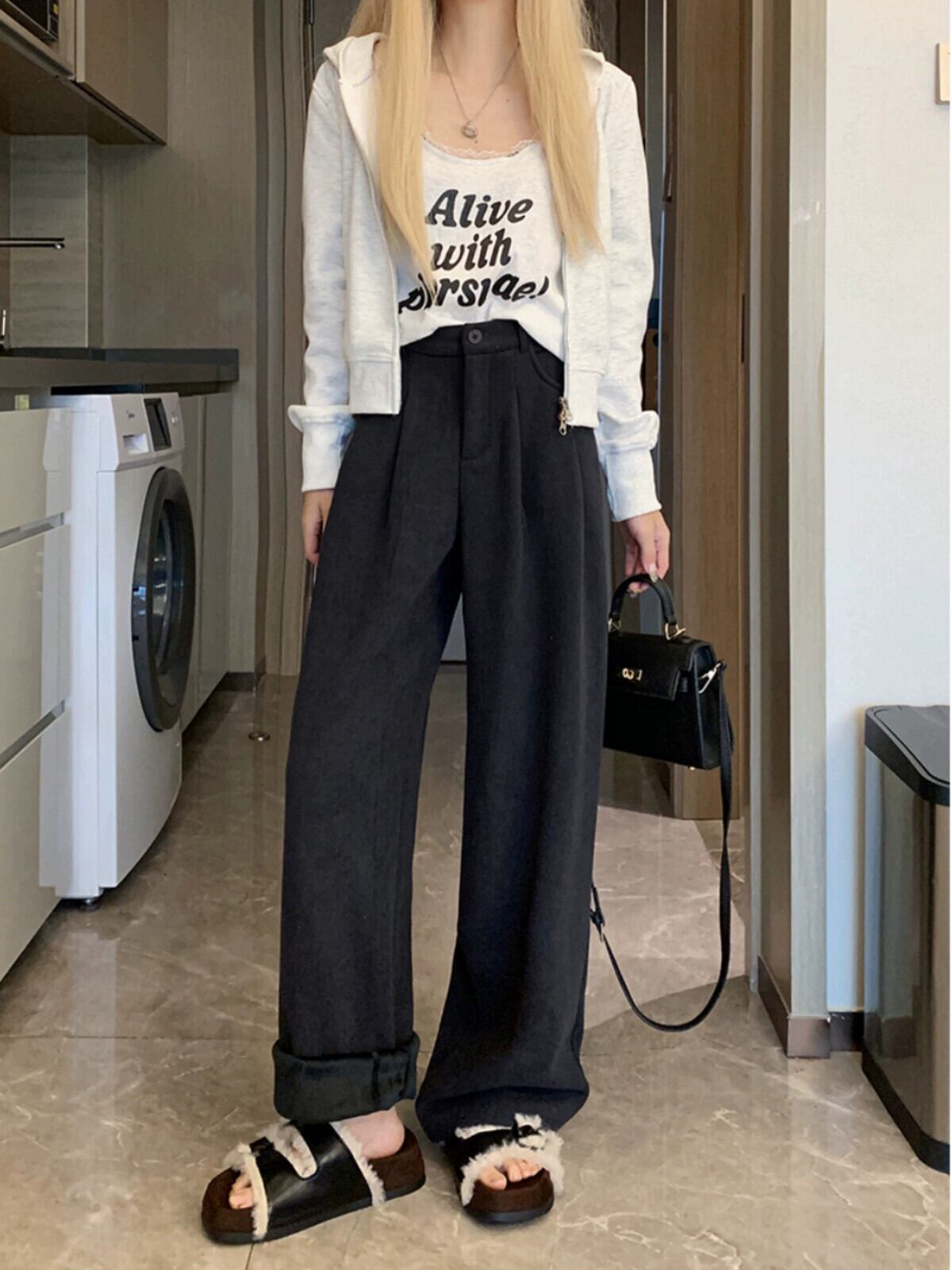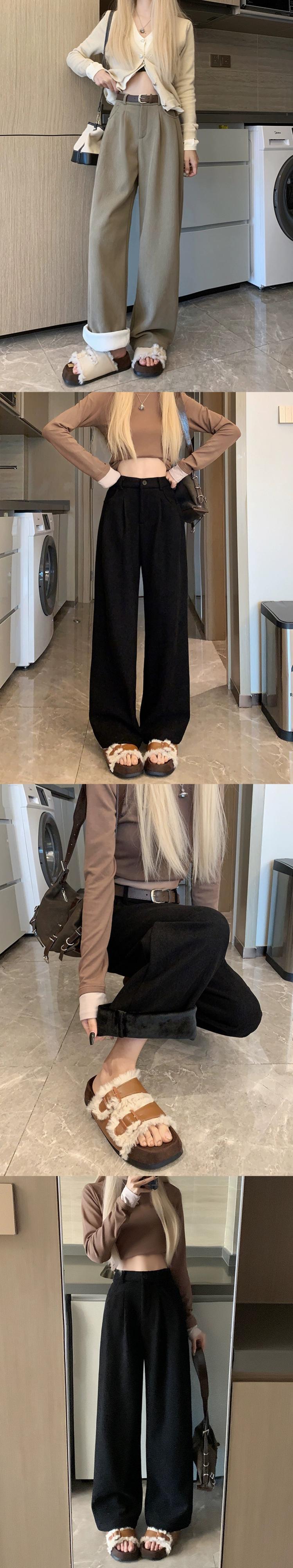 ベルベット肥厚スーツパンツ女性の秋と冬バージョン 2023 新しいハイウエストスリム黒多用途ルーズワイドレッグパンツ ブラック オータム 秋物 ウィンター 冬物 missk50593373676